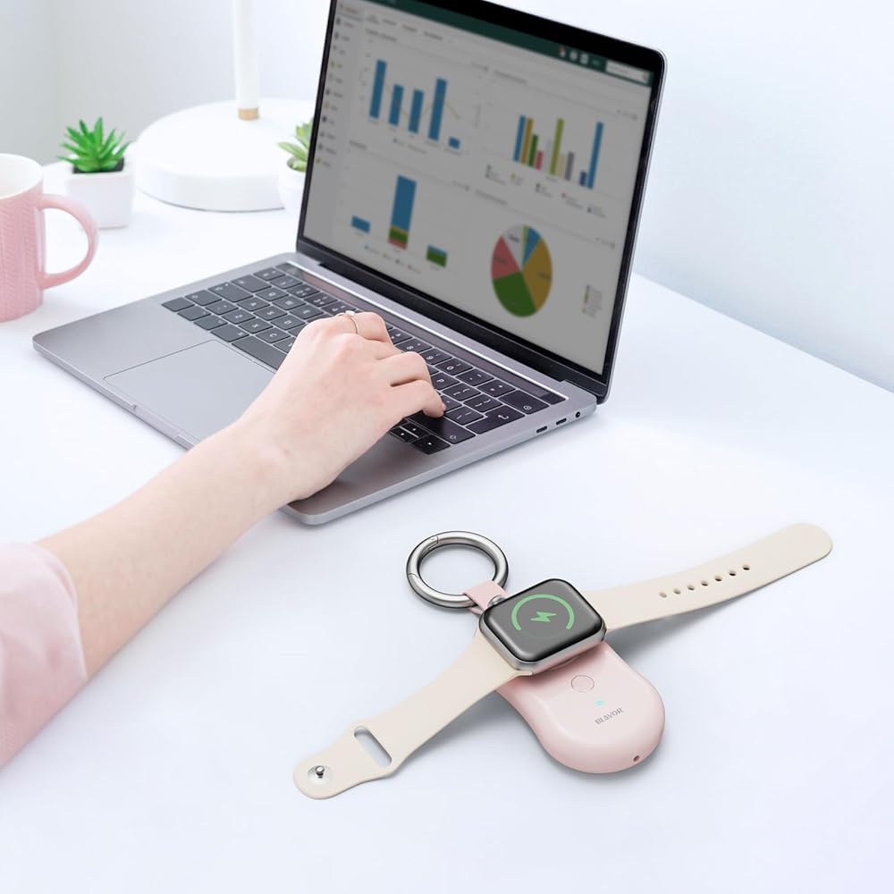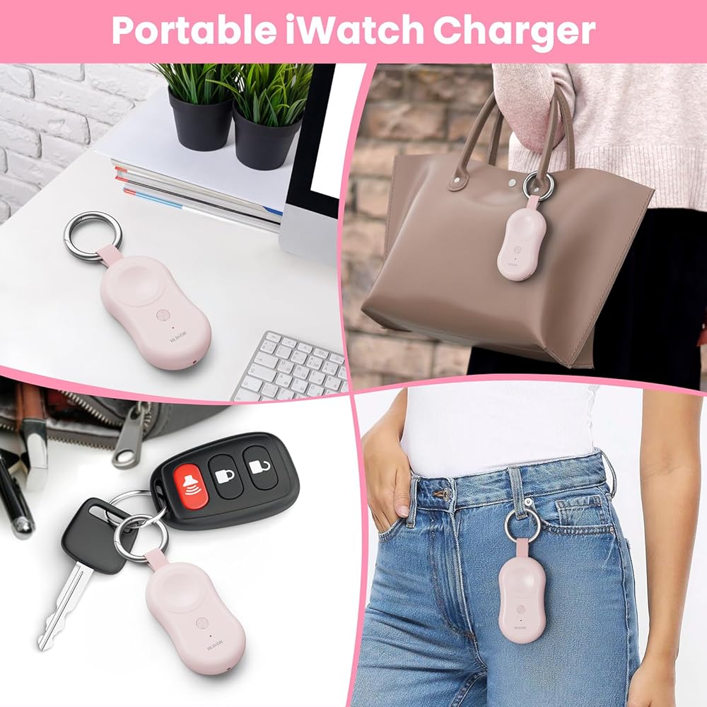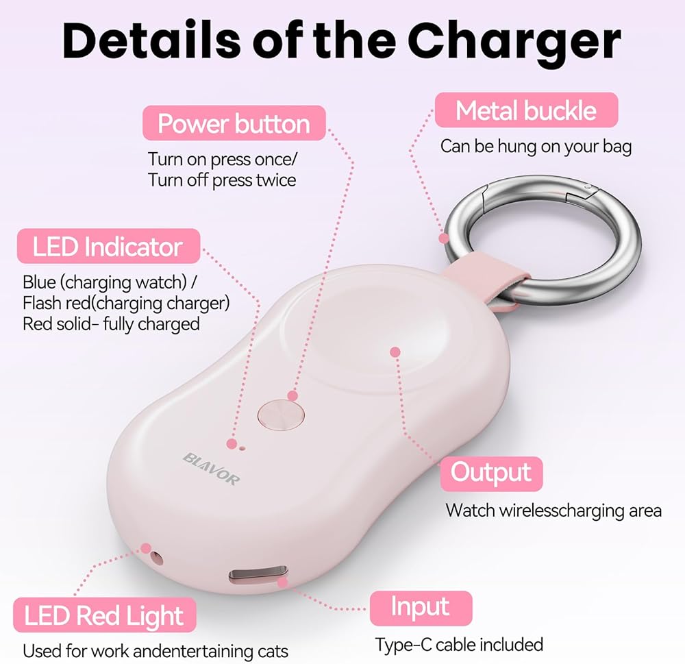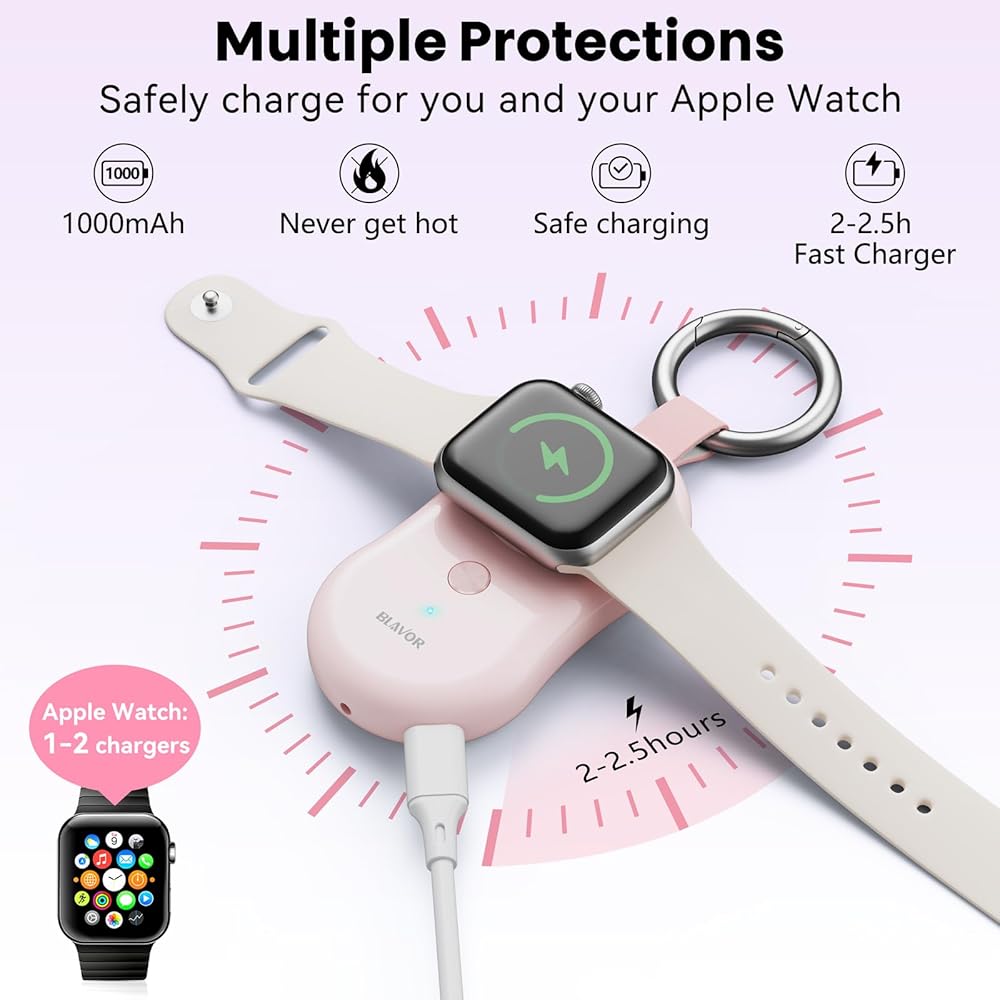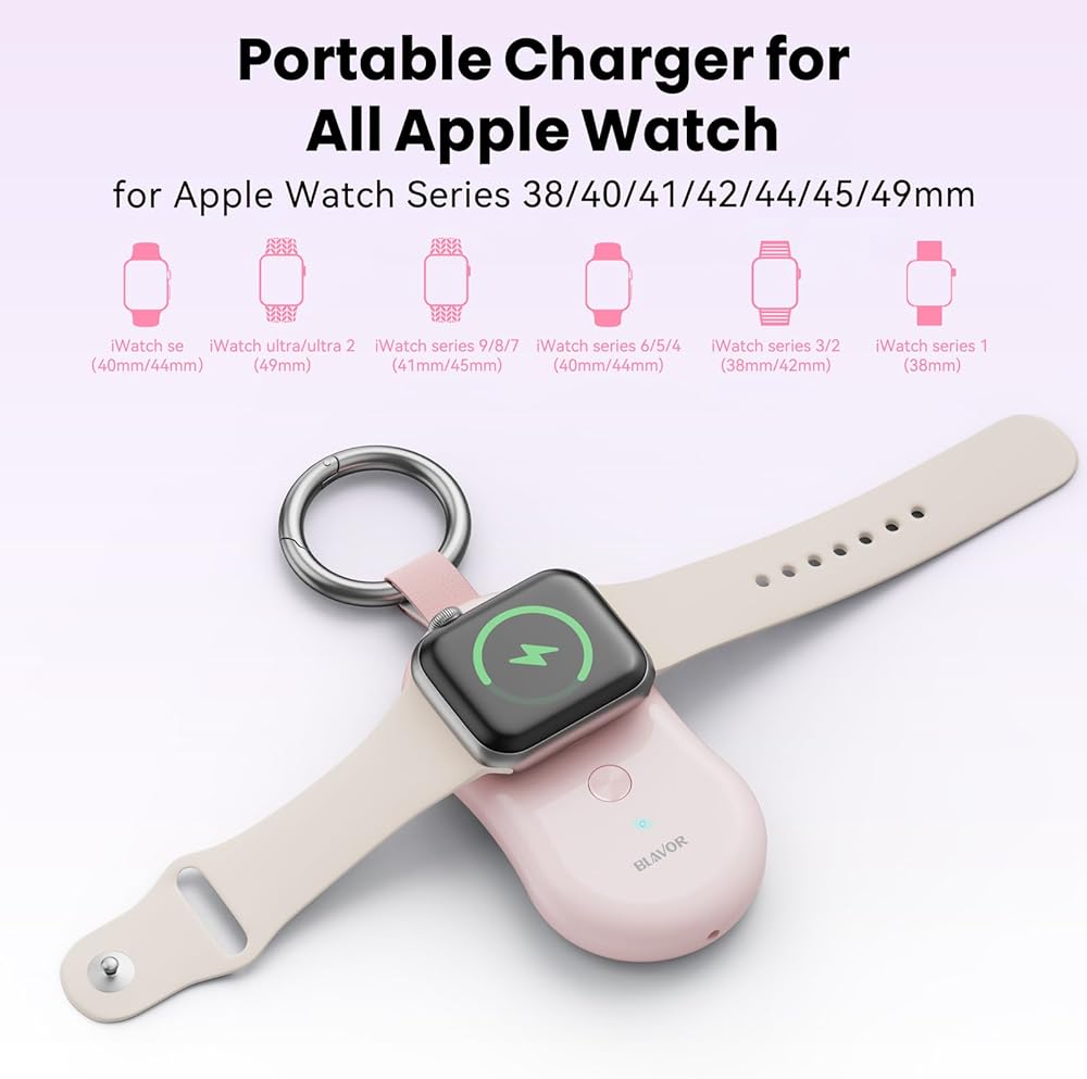 شاحن محمول BLAVOR لساعة Apple، ملحقات سلسلة مفاتيح للسفر لشاحن iWatch مغناطيسي لاسلكي، بنك طاقة 1000 مللي أمبير في الساعة متوافق مع Apple Watch Series 9/SE/8/7/6/5/4/3/2/1/UItra/Ultra 2 (وردي)