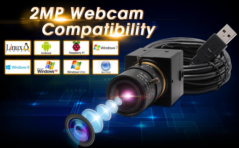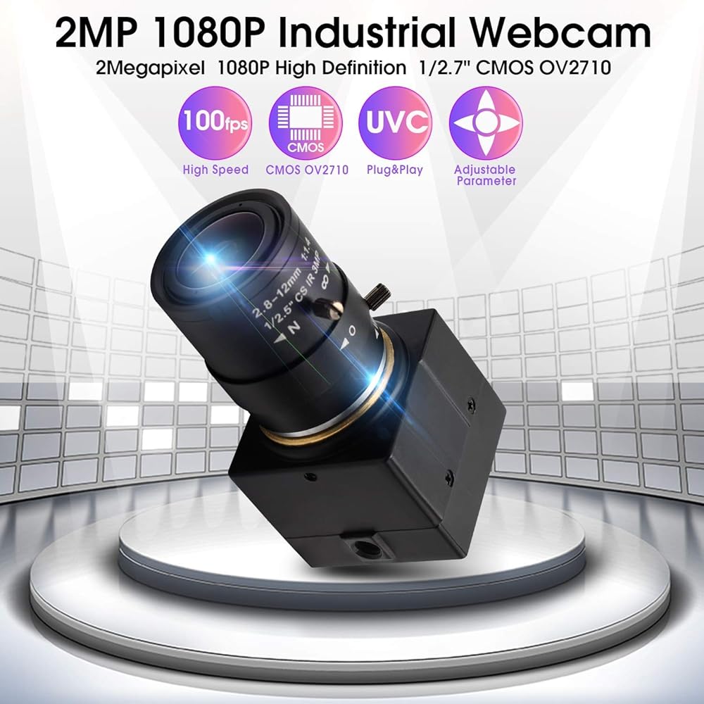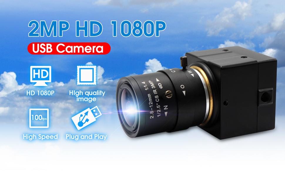 كاميرا USB زاوية واسعة 2.8-12 مم عدسة متغيرة البعد البؤري كاميرا USB كاميرا ويب 100 إطار في الثانية لمؤتمر الفيديو كاميرا ويب 2 ميجابكسل 1080 بكسل لنظام التشغيل Linux/Windows/Android، التوصيل والتشغيل تدعم كاميرا الويب OPENCV