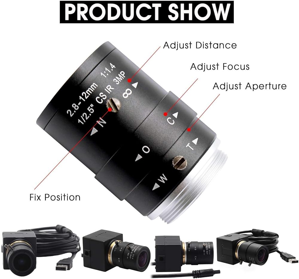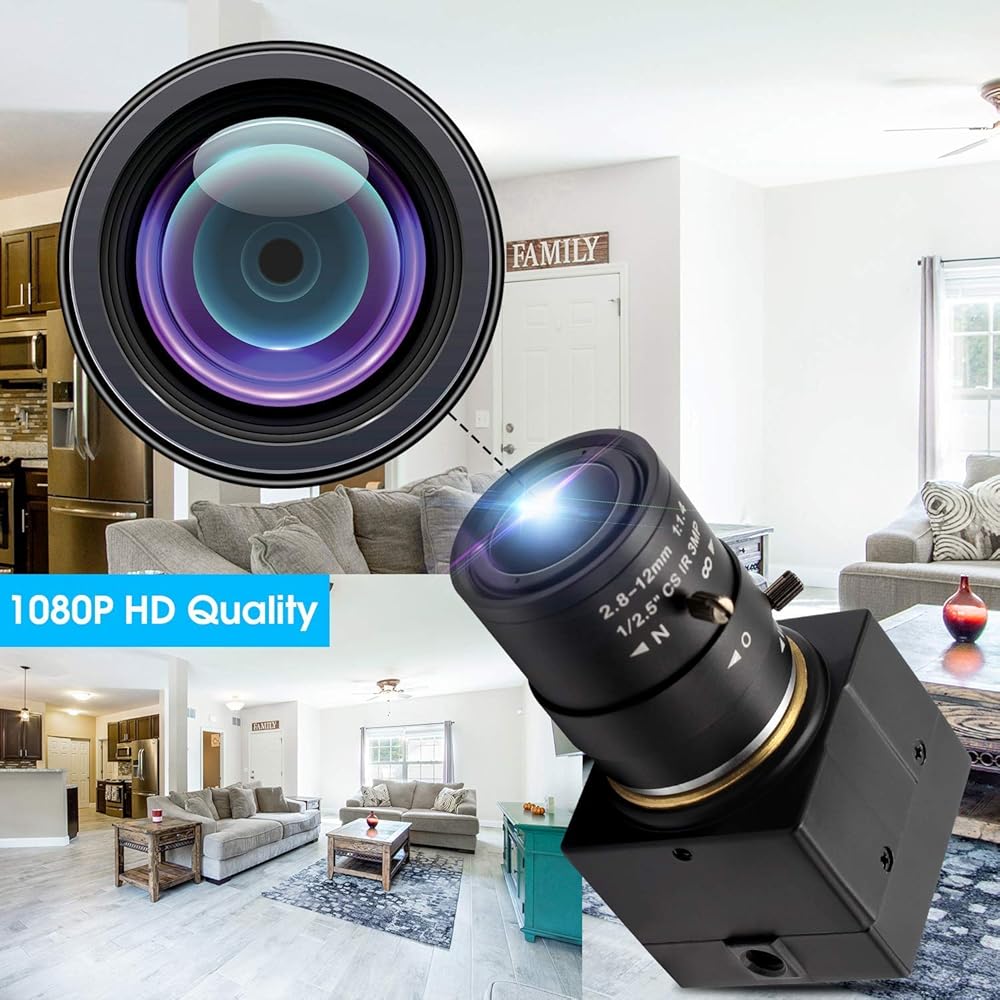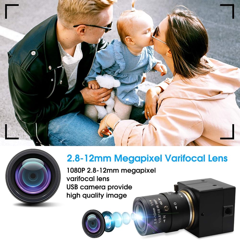 *كاميرا USB عالية الدقة 1080P: كاميرا USB عالية السرعة 1080P HD مزودة بعدسة متغيرة البعد البؤري 2.8-12 مم، صورة ملونة حقيقية وغير مشوهة.