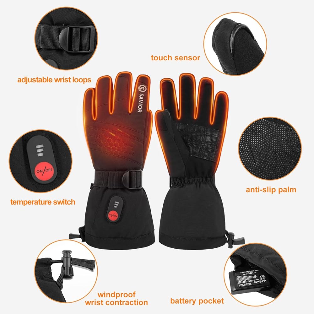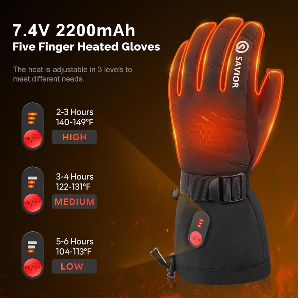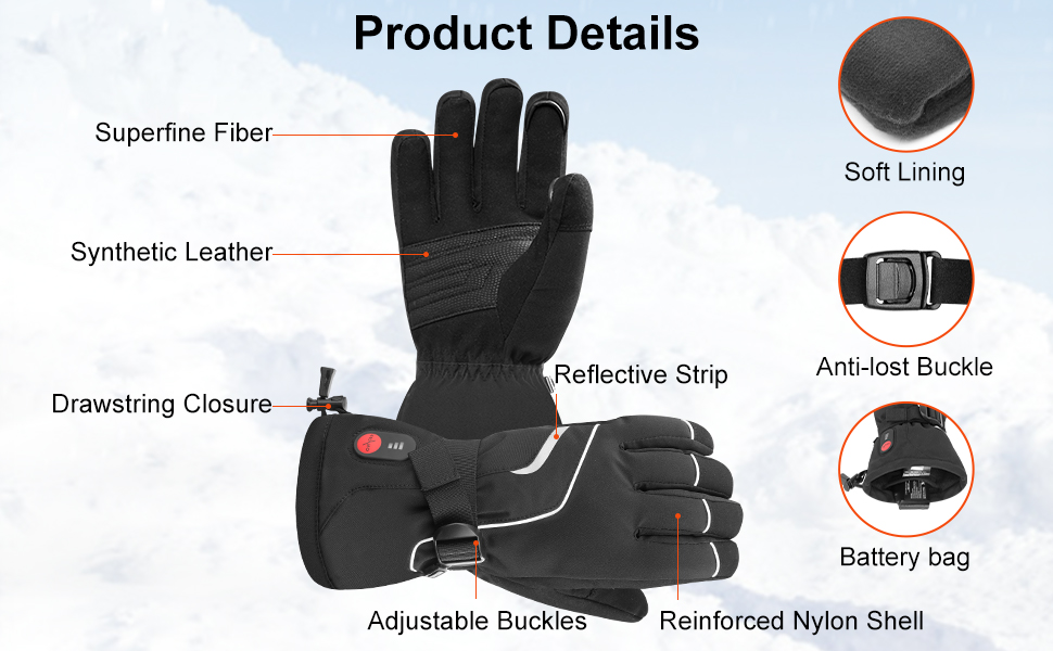 زر درجة حرارة قابل للتعديل: قفازاتنا الساخنة تبقيك دافئًا لمدة ست ساعات. ومع ذلك، عندما يحدث تغير مفاجئ في الطقس، سيتم تقصير مدة الدفء. يتيح لك زر التشغيل/الإيقاف ثلاثة إعدادات تسخين (عالية ومتوسطة ومنخفضة) لتحديد مقدار ما تحتاج إلى ضبطه وفقًا لدرجة حرارة جسمك. يتم أيضًا عرض مستوى الطاقة، تذكر شحنه في الوقت المناسب بعد الاستخدام