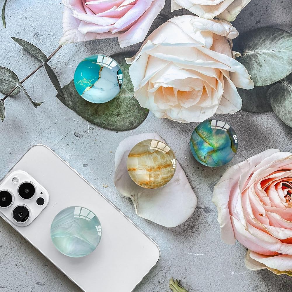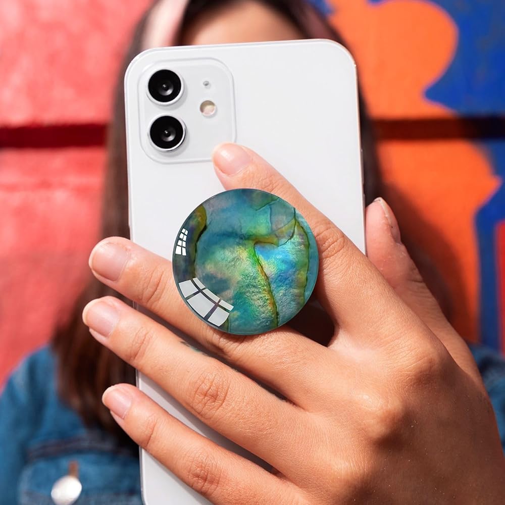 قبضة هاتف شفافة وشفافة مع مسند ممتد، حامل قابل للطي للهاتف الخلوي تصميم نمط غلاف ذهبي أخضر للهواتف الذكية