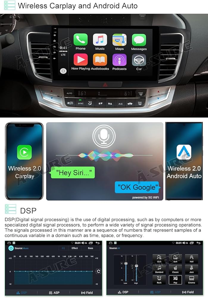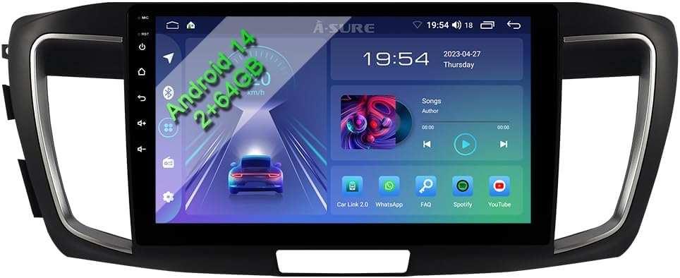 ASURE 10.1 بوصة ترقية راديو ستيريو للسيارة Honda Accord 2013-2017 الإصدار المنخفض، 4Core 2G+64G Android 12 وحدة ملاحة GPS للسيارة مع Carplay Android Auto، مشغل وسائط متعددة بشاشة لمس 1280 × 800