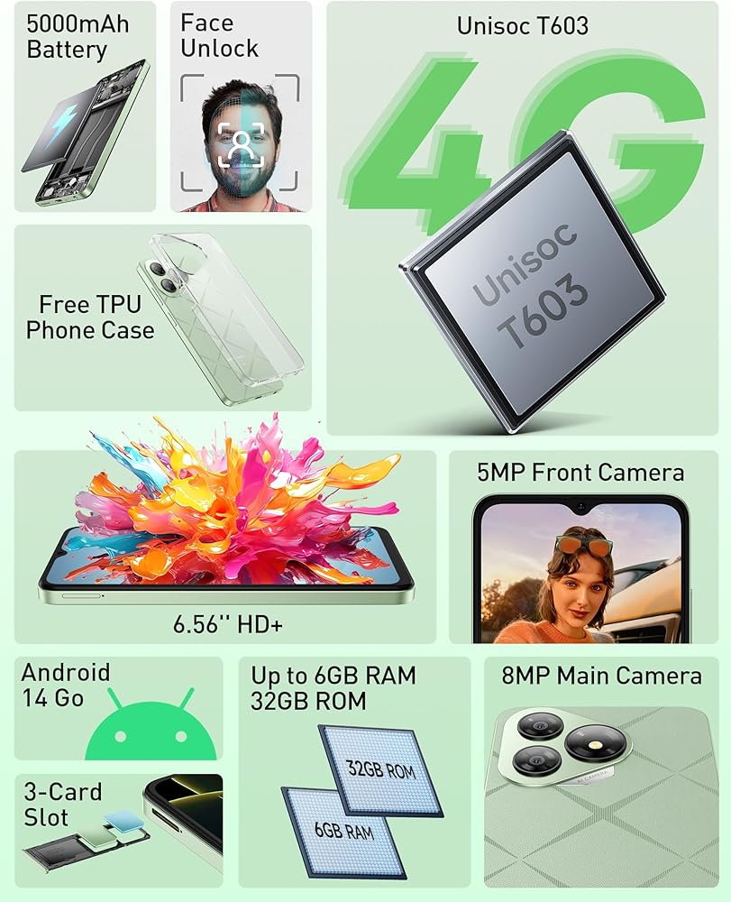 🚀 أداء سلس مع طاقة ثماني النواة - استمتع بتجربة تعدد المهام بسلاسة والتنقل السلس بين التطبيقات باستخدام معالج Unisoc T603 ثماني النواة. يتعامل هذا الهاتف غير المؤمن الذي يركز على الأداء مع المهام اليومية دون عناء، مما يجعله خيارًا موثوقًا به بين هواتف أندرويد غير المؤمنة من Ulefone.