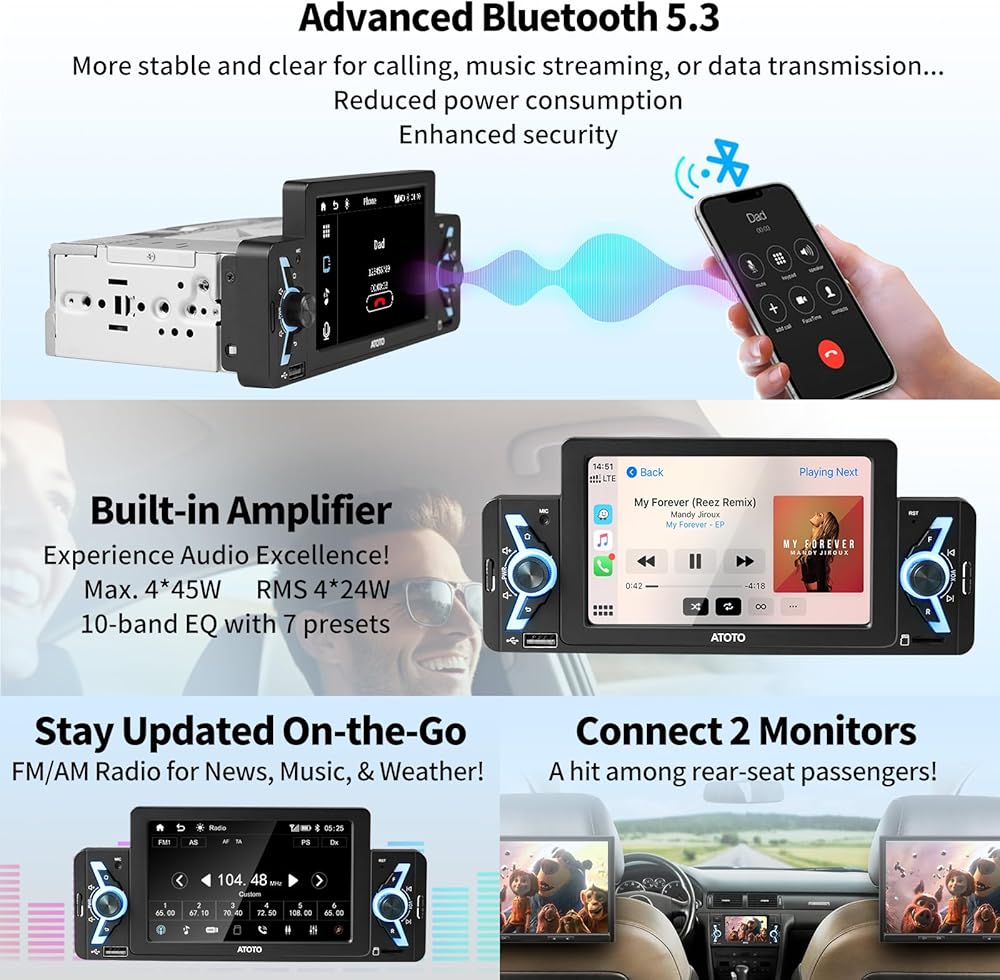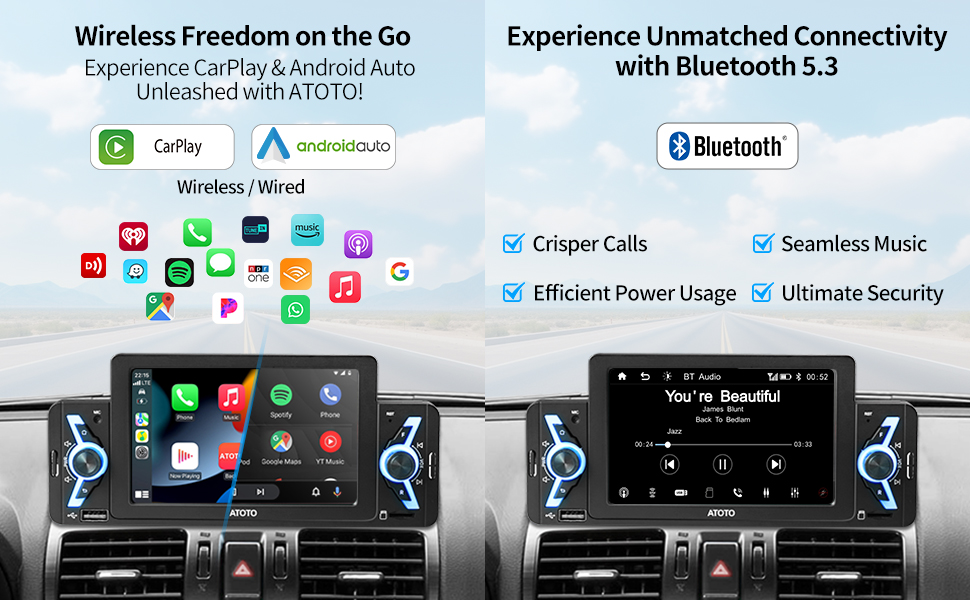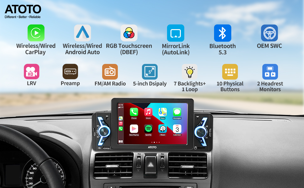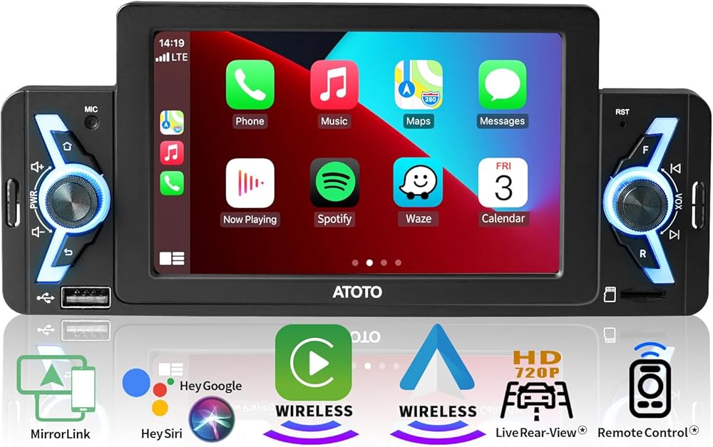 ستيريو سيارة ATOTO F7WE مقاس 5 بوصات، مشغل سيارة لاسلكي وأندرويد تلقائي لاسلكي، وصلة مرآة، راديو سيارة بشاشة تعمل باللمس مع بلوتوث، رؤية خلفية مباشرة، فيديو وصوت USB، F7G1A5WE