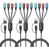 كابل شحن متعدد، كابل شحن 4 في 1 لأجهزة متعددة، سلك شاحن هاتف عالمي مضفر من النايلون مع 2 IP/USB-C/منفذ USB صغير للهاتف المحمول/الأجهزة اللوحية/المزيد (عبوتان بطول 5 أقدام)