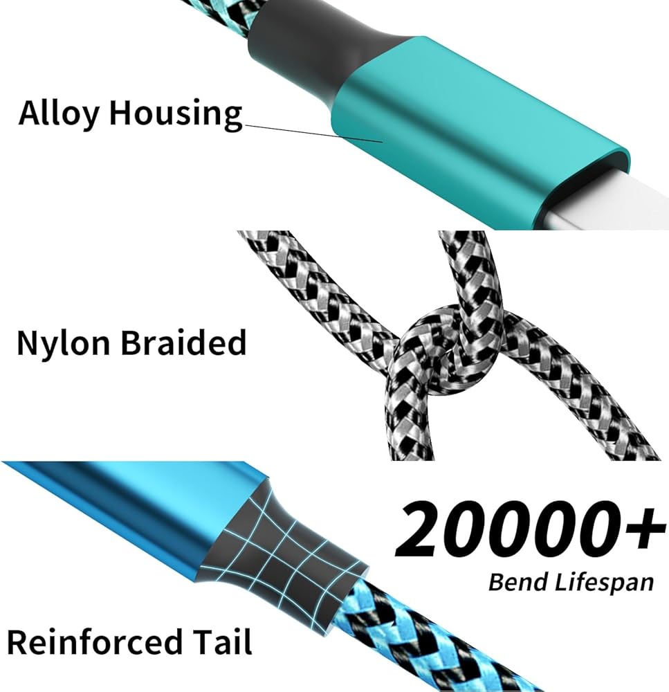 • كابل شحن عالمي: كابل شحن 4 في 1 متوافق مع الهاتف 16 15 14 13 12 11 Pro Max / 16 15 14 13 12 11 Pro / 14 13 12 Mini /16 15 14 Plus / 16 15 14 13 12 11/ SE / Xs Max / Xs / اكس ار / اكس / 8 بلس / 8 / 7 بلس / 7 / 6s Plus / 6s / 6 Plus / 6 / 5 / 5s , Pad Air / Pro, Pod / بديل نانو 7 / Samsung Galaxy UItra/ S24+/ S24/ S23+/ S23/ S22+ / S22 / S21+ / S21 / S20+ / S20 / 210+ / S10 / S9+ / S9 / S8 / نوت 7 8 9 10 20، Huawei، HTC، LG، Sony، Google Pixel، Moto، PS 4/5 وأجهزة Android الأخرى لمعظم شحن الهواتف المحمولة.