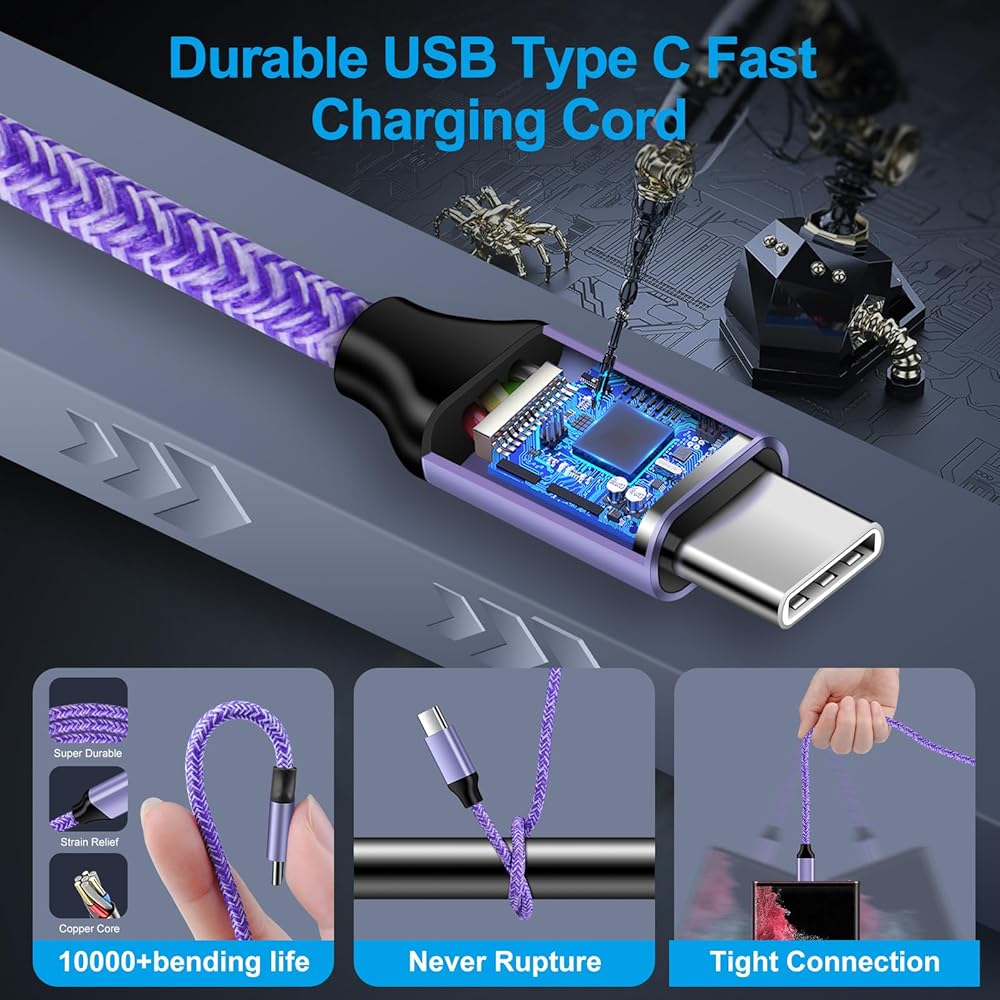 The premium flexible and durable double-braided nylon type c charger can bear 20000+ bending test service longer and will never rupture