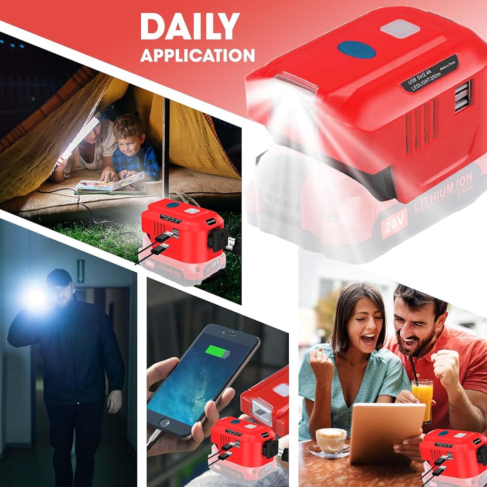 [2 USB Charging Ports] This battery converter is designed with 2 USB Outputs DC 5V/2.1A, which can charge cell phones and other electronic devices that less than 150W. Perfect for emergency power supply, outdoor activities and home backup.