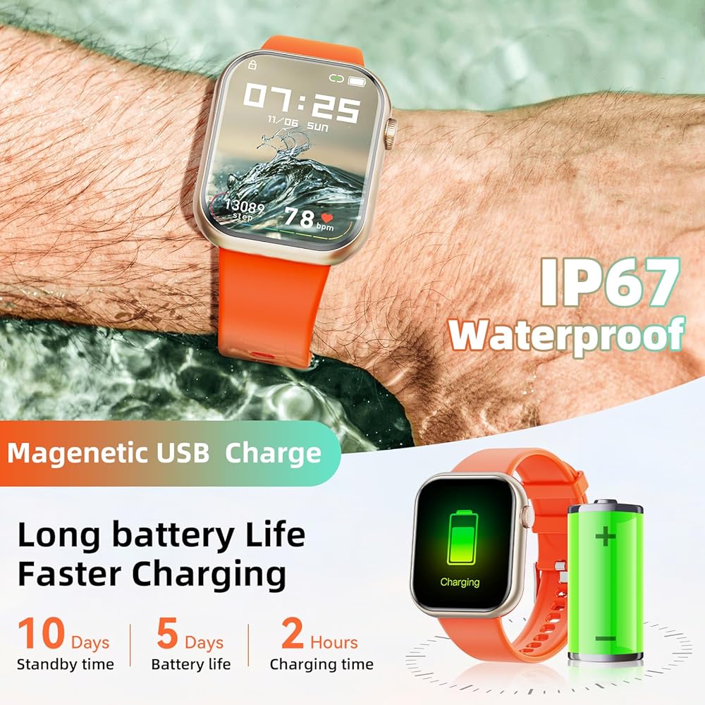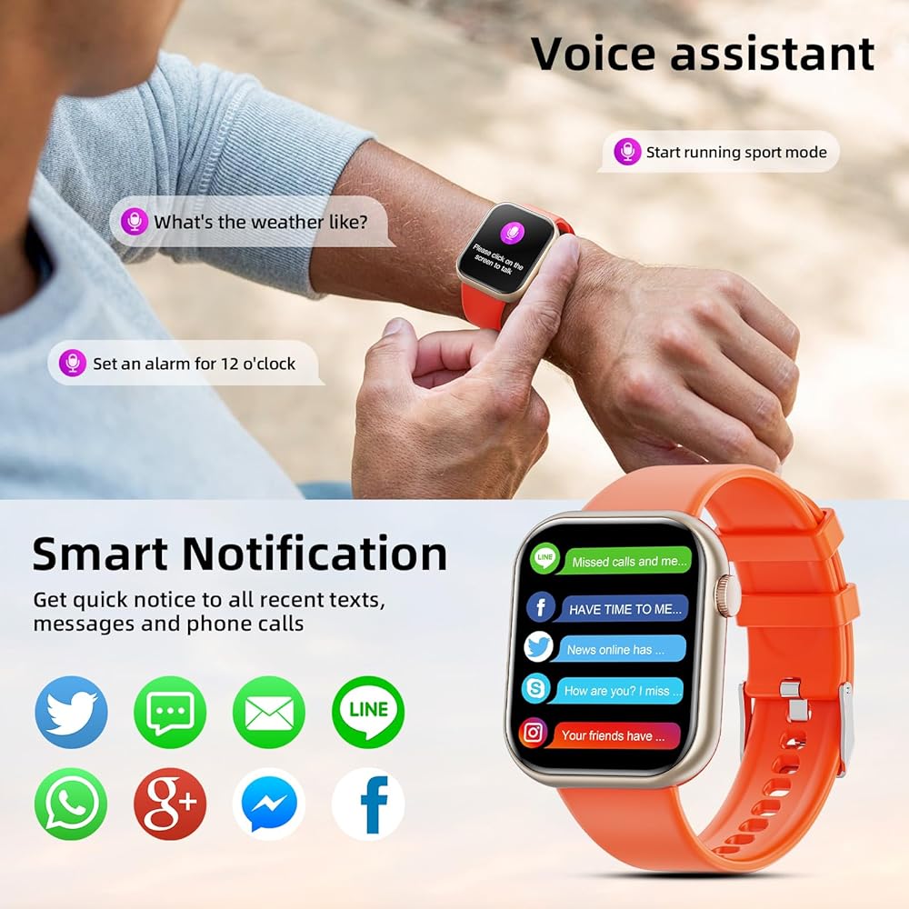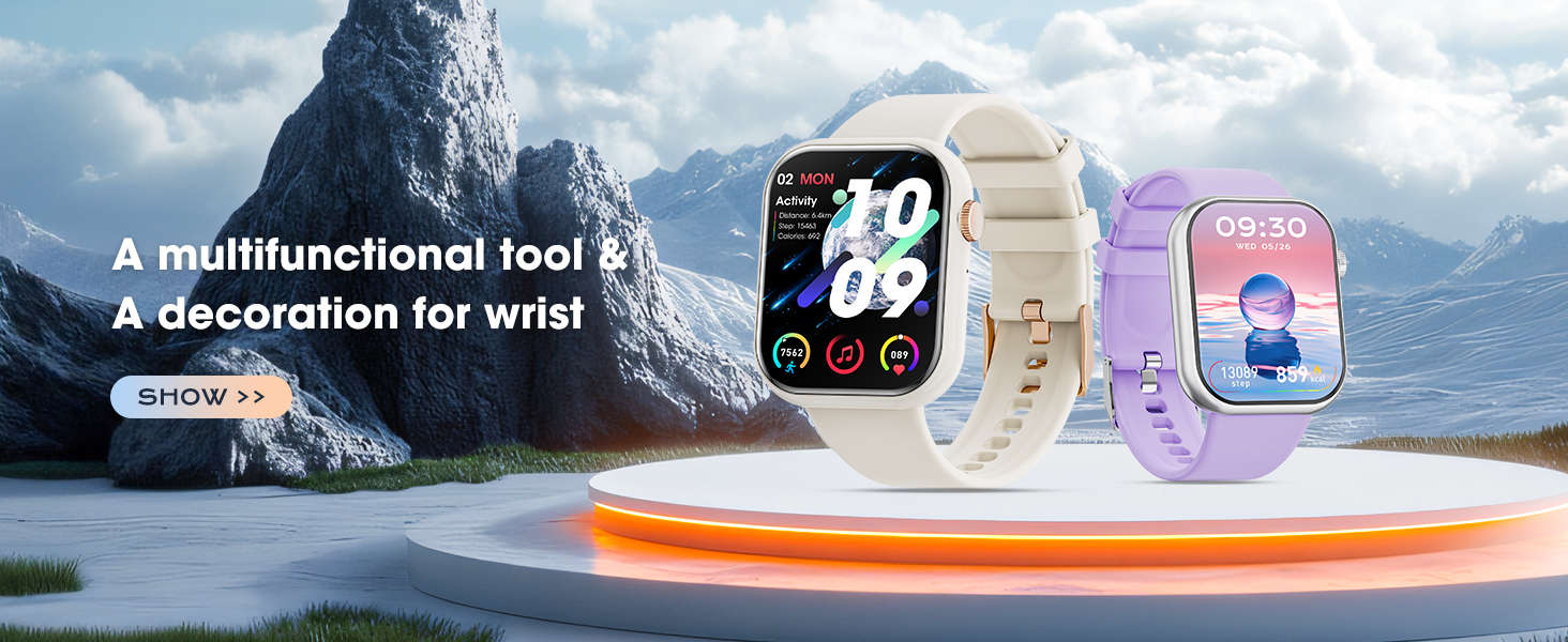 🍉【استمتع بالاتصالات المريحة في أي وقت】 ابق على اتصال أثناء التنقل مع ساعتنا الذكية النسائية التي تستخدم تقنية البلوتوث للاتصال بهاتفك المحمول. قم بالرد على المكالمات وإجراءها والتحقق من الرسائل وتلقي الإشعارات على ساعتك الذكية. الساعة الذكية متوافقة مع أجهزة Android وiOS (Android 5.1 وما فوق، IOS 8.2 وما فوق، تدعم Bluetooth 4.0).