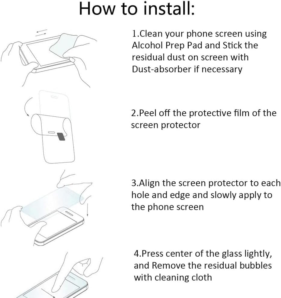 • سهولة التركيب: يأتي واقي الشاشة الخاص بنا مزودًا بمزيل الغبار ومسح الشاشة. تأكد من عدم وجود فقاعات هواء وسهولة التركيب.