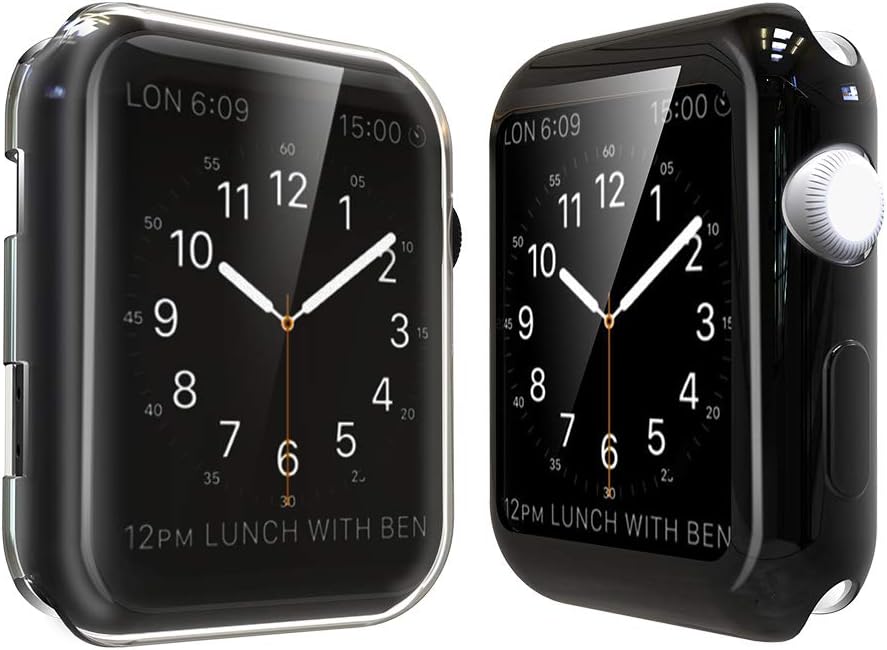 Simpeak 2-Pack Soft Screen Protector Case Compatible with Apple Watch Series 9 Ultra 8 7 (41mm 45mm 49mm) Series 6 SE 5 4 (40mm 44mm) Series 3 2 1 (38mm 42mm),Clear+Black