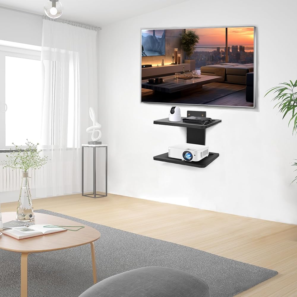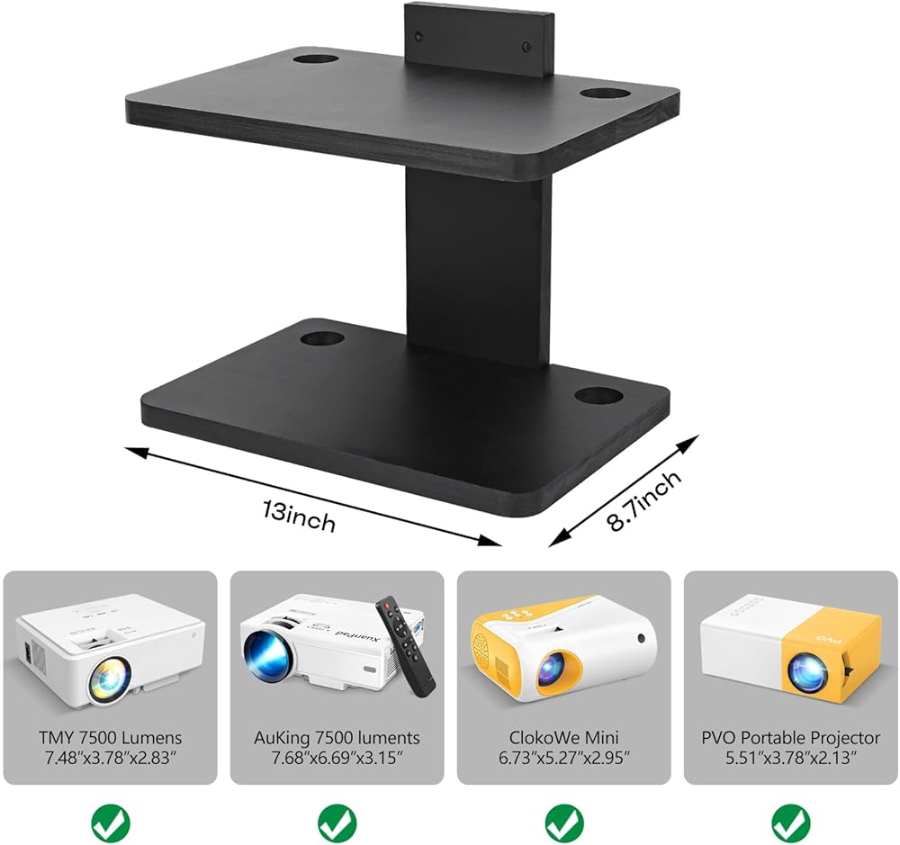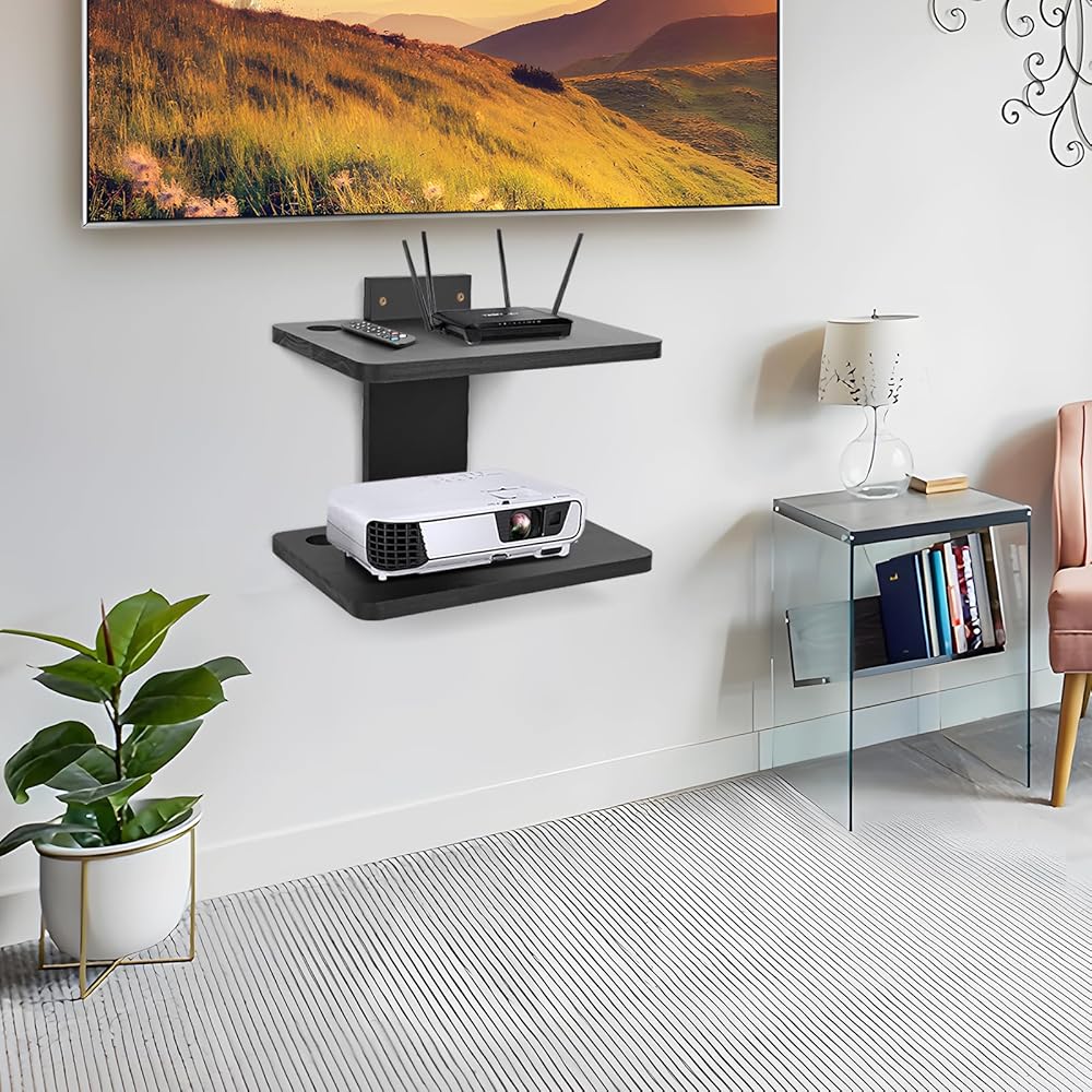 رف صغير لجهاز العرض / حامل جهاز العرض على الحائط، رف عائم / رف جهاز التوجيه / رف صندوق كابل المودم / حامل حامل جهاز العرض / حامل جهاز العرض من الخشب الأسود2