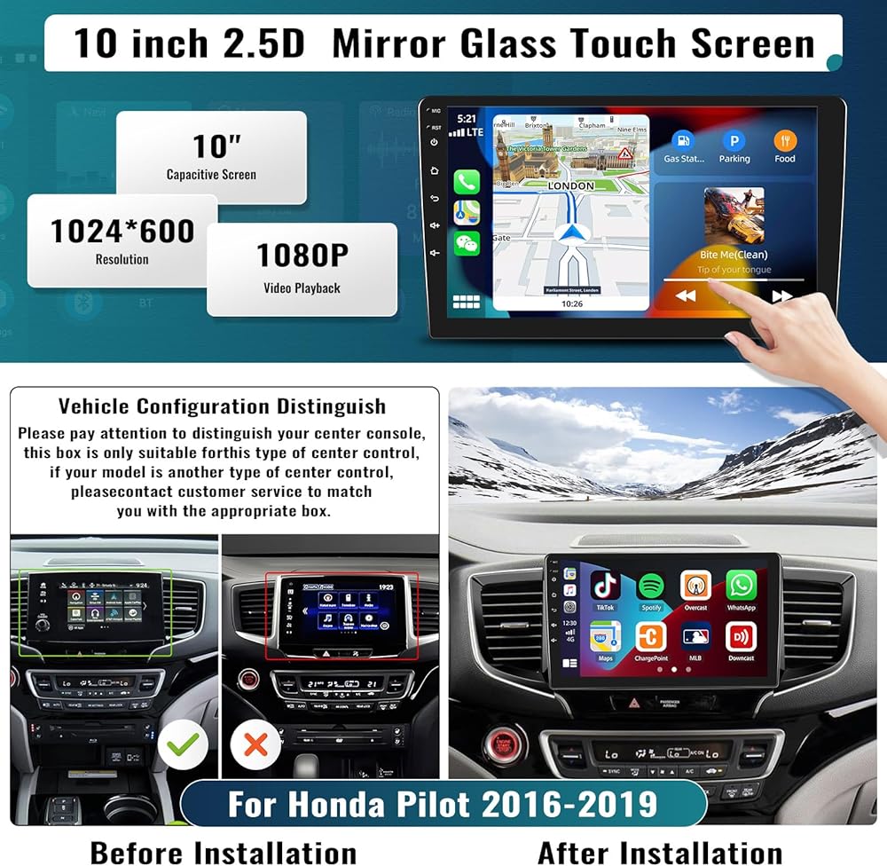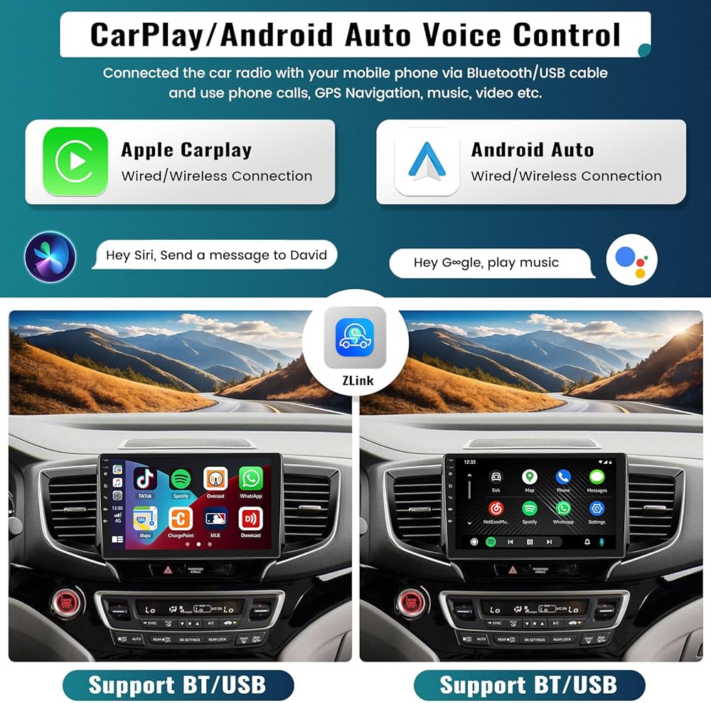 【متوافق مع Apple CarPlay/Android Auto، Mirror Link】مشغل الوسائط المتعددة للسيارة Android لسيارة Honda Pilot 2016-2019 مع carPlay اللاسلكي وAndroid Auto، يمكنك التحكم الصوتي Siri/Go-ogle عبر اتصال Bluetooth/WiFi للوصول إلى استريو السيارة و استخدم التنقل عبر الخريطة، وإجراء مكالمة هاتفية، وتشغيل الموسيقى، وتلقي الرسائل وما إلى ذلك. وحدة اندفاعة الصوت الرقمية لهوندا 2016 مع وصلة مرآة، وعرض المحتوى من هاتفك بشكل متزامن (ملاحظة: أحدث دعم iOS 17.7/ أندرويد 13، سام-سونغ جزئي)