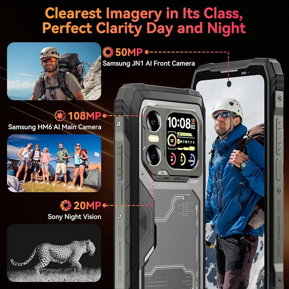 【مكبر صوت صندوقي مع Smart-PA】هاتف Android N6000، مكبر صوت صندوقي فائق الخطي مع صوت Smart-PA أعلى وأكثر إشراقًا، يوفر موسيقى وصوتيات عالية الجودة، ويرافق رحلتك الصوتية. قدم فريق البحث والتطوير المحترف في Blackview بطارية الحالة الصلبة ثنائية الخلية، ويتضمن N6000 بطارية بقوة 3880 مللي أمبير في الساعة أسفل الغطاء. مع شحنة واحدة فقط، يضمن لك N6000 استكشافًا أطول مع ما يصل إلى 18 يومًا في وضع الاستعداد. يمنحك الشحن السريع بقوة 18 واط 22 ساعة من الاتصال و10 ساعات من تصفح الموقع دفعة واحدة.