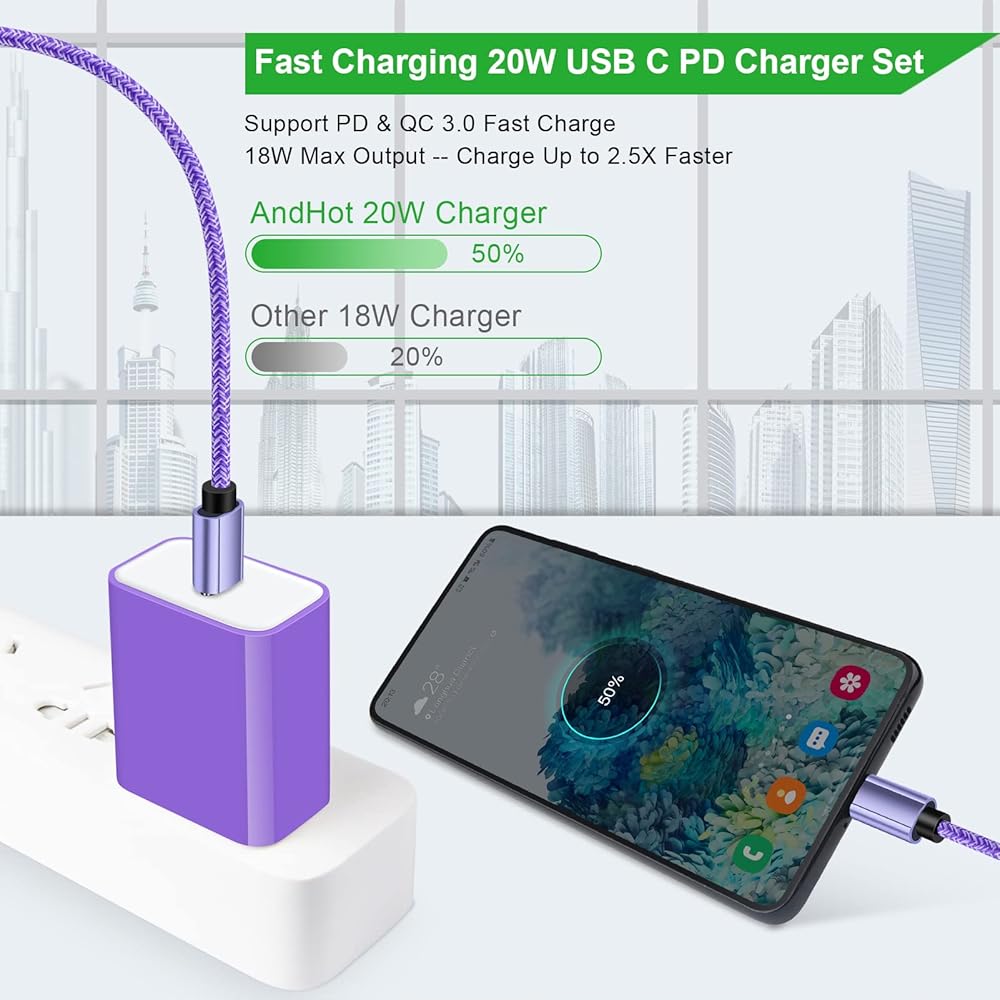 20W 3A USB C PD Power Adapter with Type C to C Cable
