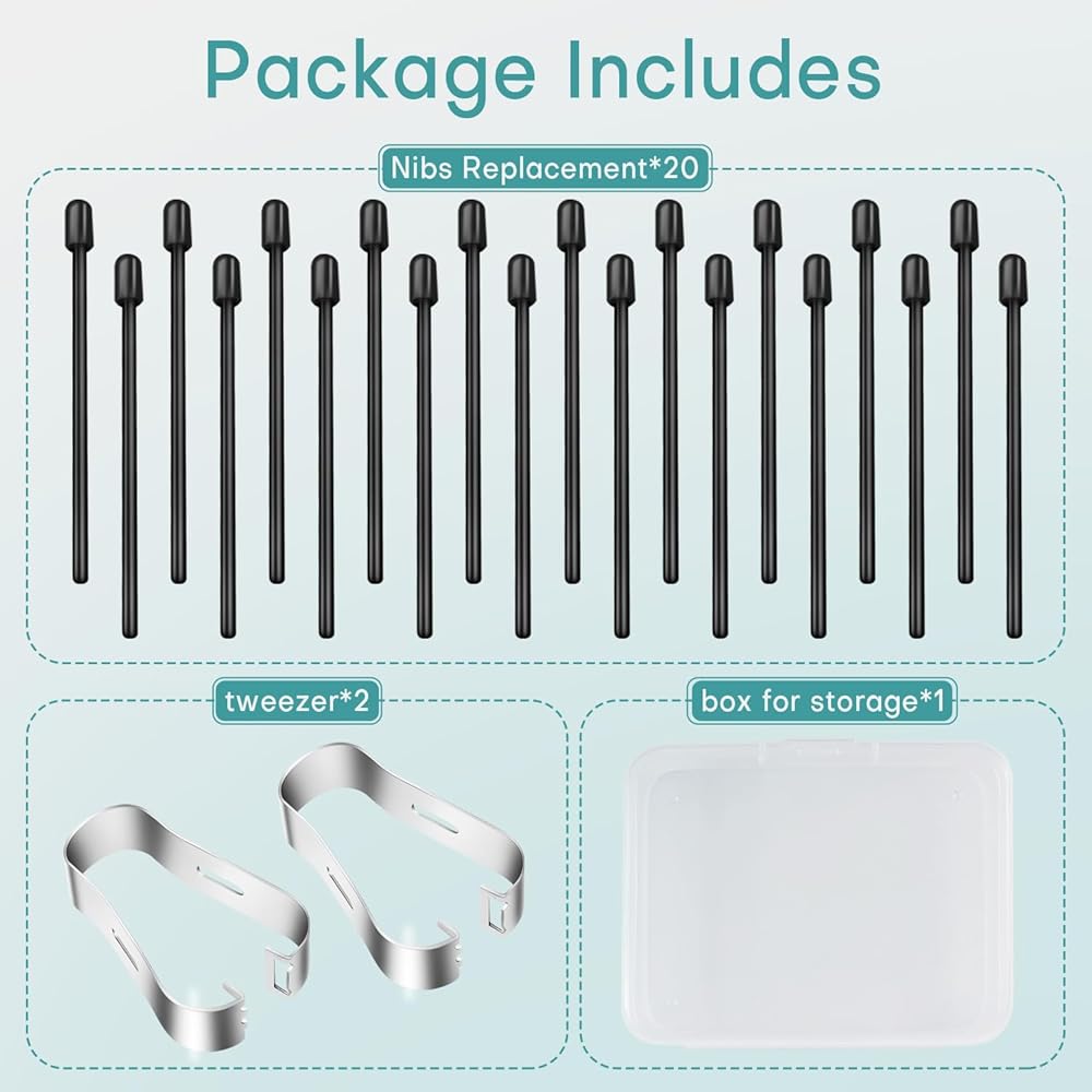 • THE PACKAGING INCLUDES: Get Each package all have a The plastic box includes 20pcs pen tips and 2pcs tweezers tool, Enough for your daily use.
