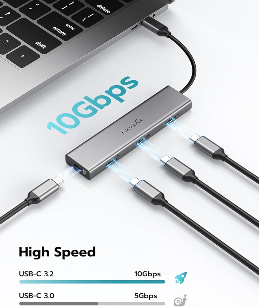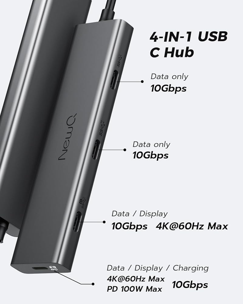 نقل بيانات عالي السرعة: تدعم جميع منافذ USB C الأربعة USB C 3.2 GEN2 بسرعة 10 جيجابت في الثانية، مما يضمن نقل البيانات بسرعة فائقة لجميع أجهزتك.