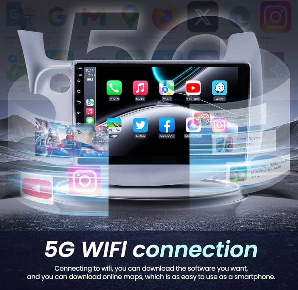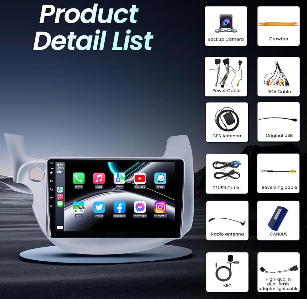 راديو ستيريو للسيارة Honda Fit 2008-2013: 10 بوصات HD 1280x800p تعمل باللمس 2+32G مع CarPlay لاسلكي Android Auto Bluetooth كاميرا احتياطية GPS ملاحة 5G WiFi مرآة رابط MIC DSP صوت FM SWC