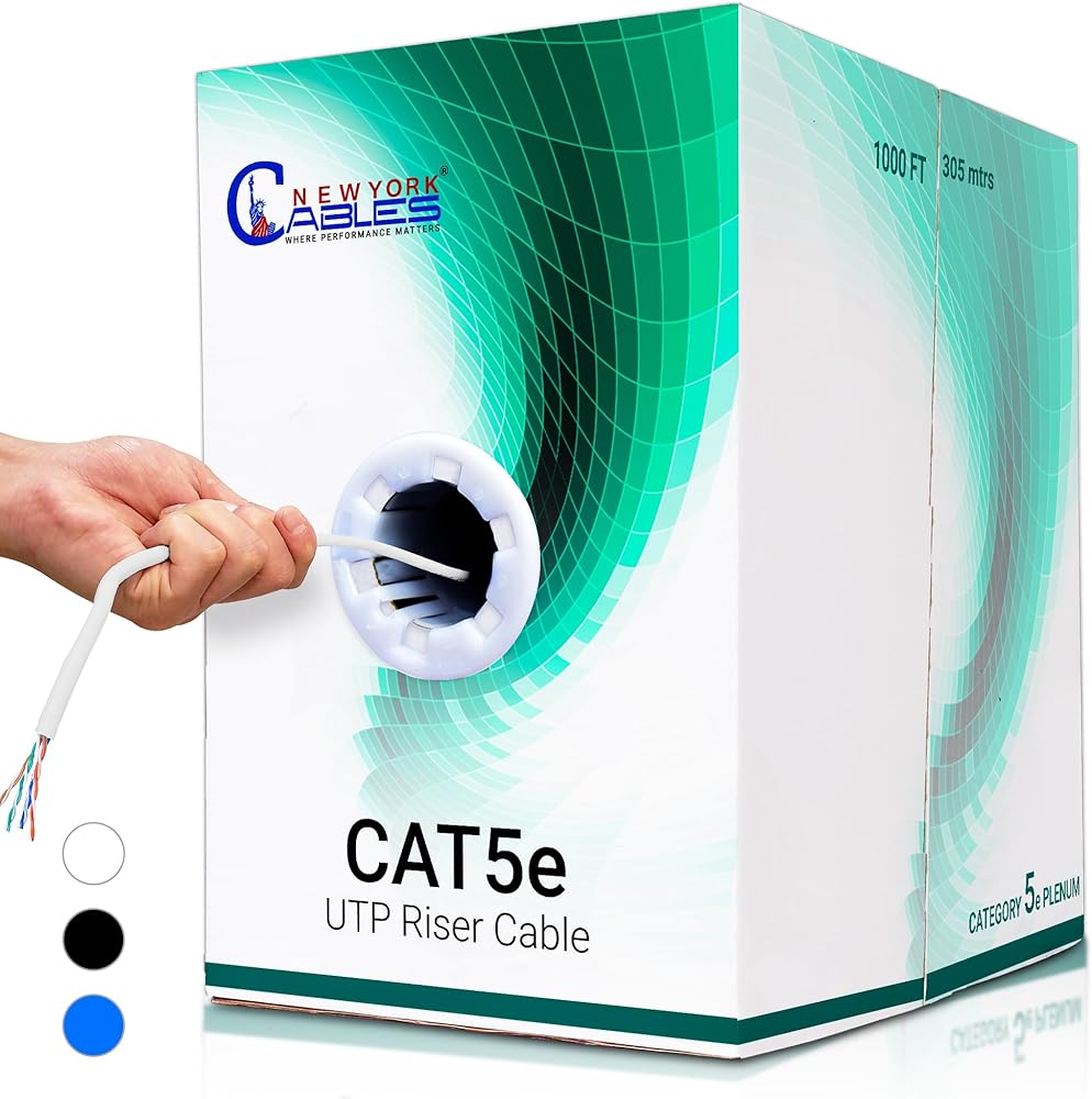 NewYork Cables Cat5e Cable 1000ft - موصلات صلبة Cat5e Riser Cable (CMR) - 24 AWG، 350 ميجا هرتز، UTP - كابل إيثرنت عالي السرعة Cat 5e تم اختباره بجودة 1000 قدم