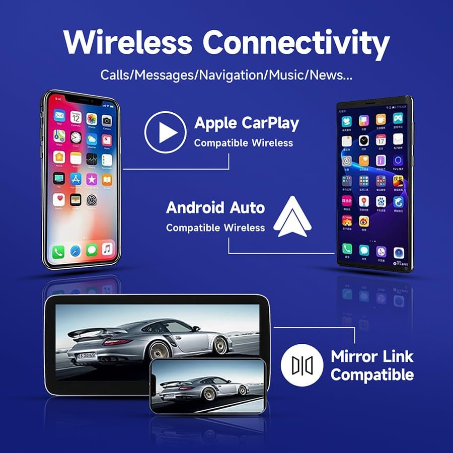 【مدمج في Carplay اللاسلكي وAndroid Auto】: مدمج في IOS carplay ووظائف android التلقائية، يمكن أن يعمل مع الخرائط/ الموسيقى/ المكالمات الهاتفية. استمع إلى أغانيك المفضلة باستخدام iTunes أو Apple Music أو أي تطبيق آخر وتمتع بإمكانية الوصول إلى الرسائل. احتفظ بمقبض سيارتك الأصلي والتحكم في عجلة القيادة.