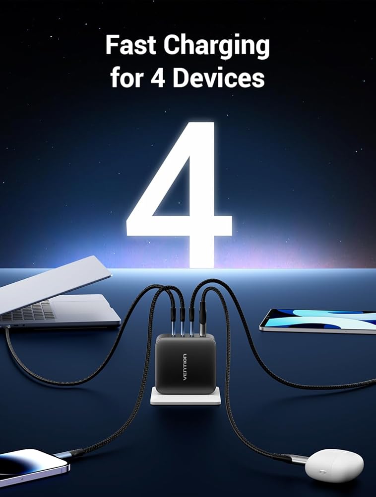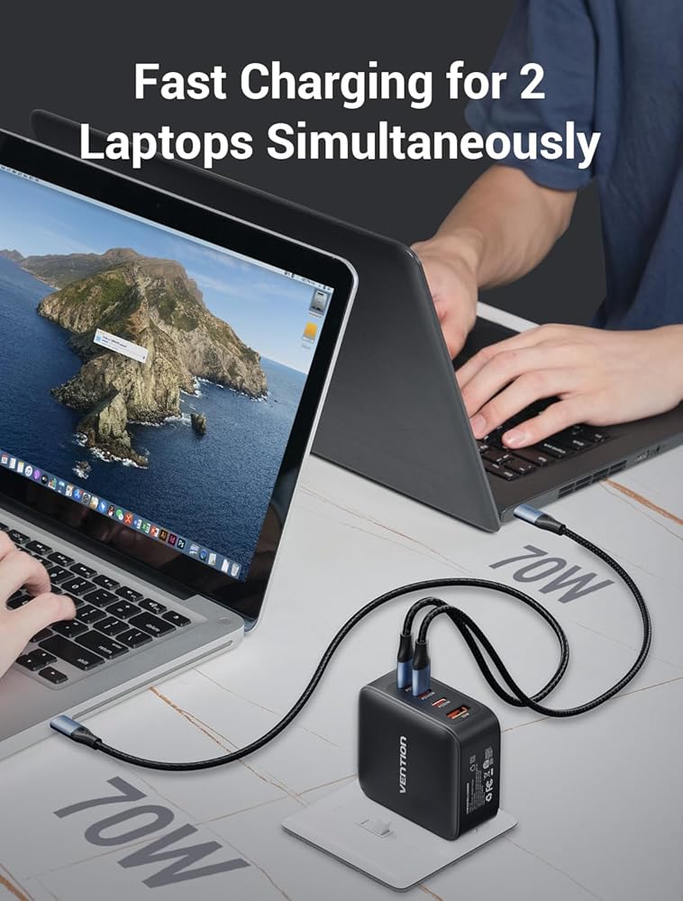 شحن متعدد المنافذ 4 في 1: يحتوي شاحن Macbook Pro هذا على ثلاثة منافذ USB C ومنفذ USB A واحد، مما يعمل على تشغيل جهازي كمبيوتر محمول MacBook Pro في وقت واحد. أسرع، وموفر للوقت، وموفر للمساحة لمستخدمي الأجهزة المتعددة.