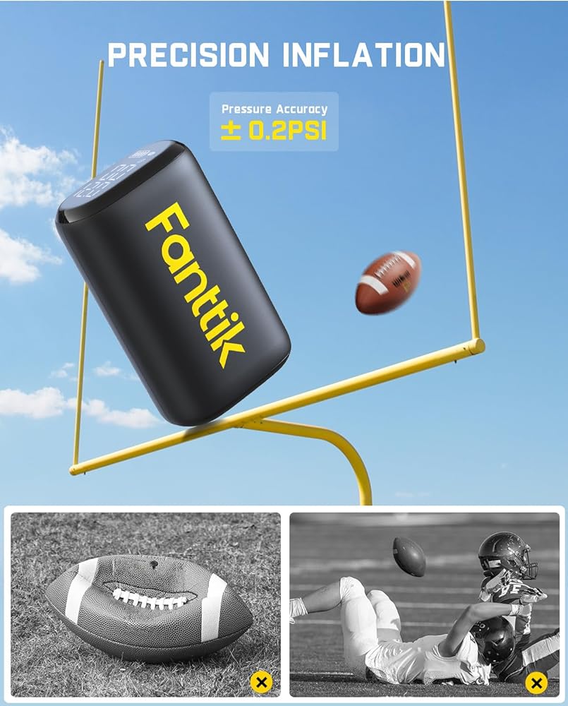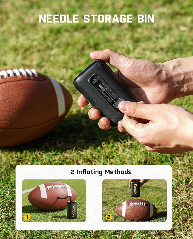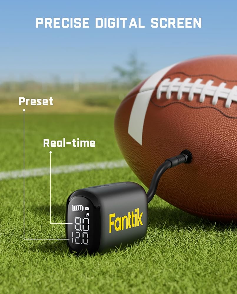النفخ النفاث: ينهي نفخ كرة القدم بسهولة خلال 12 ثانية (11 إلى 12 رطل لكل بوصة مربعة)؛ لا مزيد من الضخ اليدوي الممل، فمضخة الهواء الذكية ستحرر يديك؛ فهو سريع ودقيق وخالي من المتاعب، ويضمن لك الاستعداد دائمًا للعمل