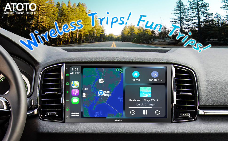 توفر الوحدة الرئيسية لراديو السيارة 2-DIN F7 WE خدمة CarPlay السلكية واللاسلكية. يمكنك الحصول على الاتجاهات من تطبيقات التنقل مثل Waze، وتشغيل قائمة التشغيل الشخصية الخاصة بك على Spotify، وما إلى ذلك، حتى دون إخراج جهاز iPhone الخاص بك. إذا كنت ترغب في استخدام نظام الملاحة CarPlay أثناء الاستماع إلى راديو FM/AM أو موسيقى USB، فمن المستحسن بشدة شراء سلسلة ATOTO F7 XE وA6 PF وA6 PP.