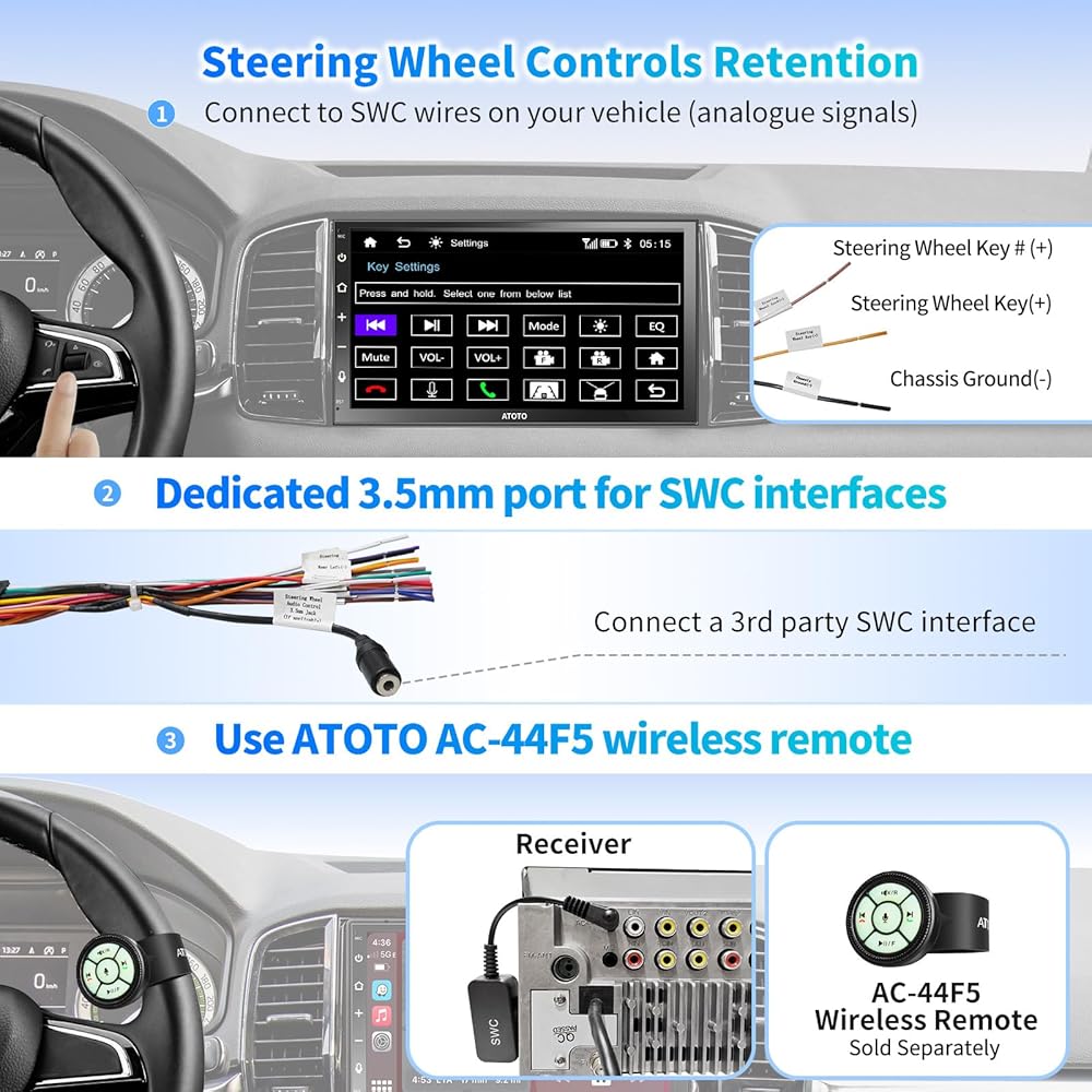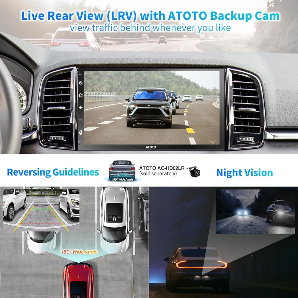 يقبل راديو F7 CarPlay إدخال كاميرا احتياطية بدقة 720 بكسل عالية الدقة. يعمل بشكل أفضل مع ATOTO AC-HD02LR (غير متضمن) لتقديم LRV، مما يسمح لك برؤية ما خلف السيارة في جميع الأوقات. وبدلاً من ذلك، يوفر F7 مدخلاً للكاميرا الأمامية، وما إلى ذلك. إذا كنت تنوي الاحتفاظ بعناصر التحكم في عجلة القيادة من OEM مع محول طرف ثالث، فإن F7 يوفر مقبسًا مخصصًا مقاس 3.5 ملم. أو قم ببساطة بشراء جهاز التحكم عن بعد ATOTO AC-44F5.