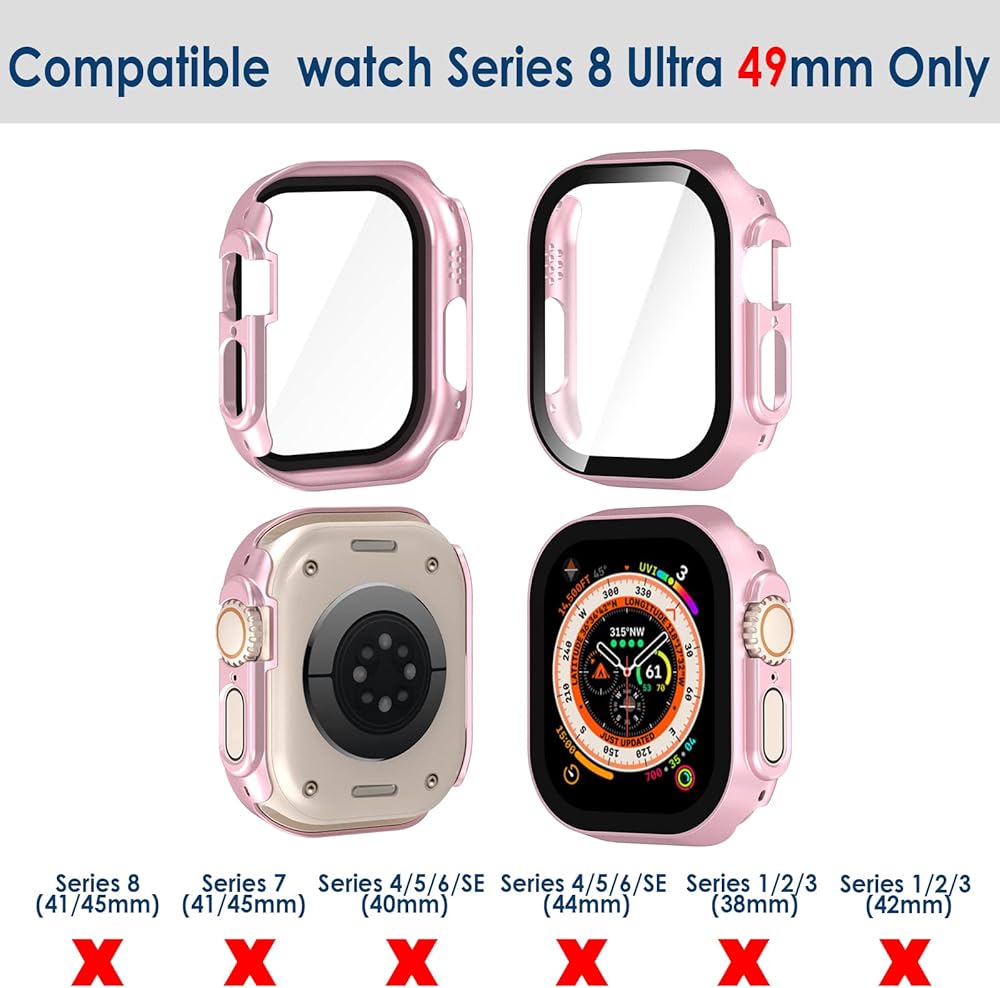 ✔ Applicable Models -- Accessory Screen Protector Case Compatible with Apple Watch Ultra / Ultra 2 49mm.(Smartwatch not included)