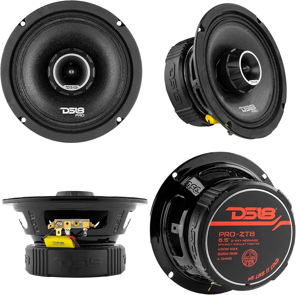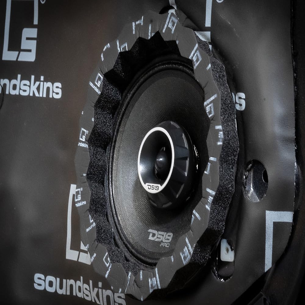 Designed to give you the best sound, SoundSkins had built a sound system bundle designed to drive the sound of these speakers in to the cabin and not into the surrounding enclosure. Pairing the DS 18 PRO-ZT6 coaxial speaker with their wavy foam sound ring technology will fit that goal perfectly. The PRO-ZT6 has a sleek design that ensures minimal distortion, a smooth response, and incredible sound detail. Constructed with a paper core, with a clothed upper surround that is inlayed to a steel basket frame and supported with a 27 oz. ferrite magnet . Fitting multiple applications like cars, truck, UTV, and motorcycles the PRO-ZT6 is a versatile speaker only enhanced when paired with the SoundSkins speaker ring system. The SoundSkins speaker ring system, is a 1" closed cell foam that encompasses the circumference of the speaker edge sealing the mounting face to ensure that sound travels forward and not to the sides and a wavy foam backing plate to catch the vibrations and keep them from return through the speaker. Avoid the rattles and hear the music, SoundSkins can make it happen for you and your stereo system. This is a single unit only.