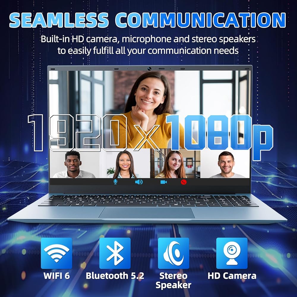 15.6 Inch Screen Laptop: 15 inch laptop features a spacious 1920x1080 Full HD display, delivering stunning clarity and vibrant colors. The large screen laptops allows for full immersion while engaging in productivity tasks, watching movies, or creating presentations. The screen's 180° hinge allows for flexible viewing angles, so you can share content easily with friends and colleagues or adjust your view for the best experience