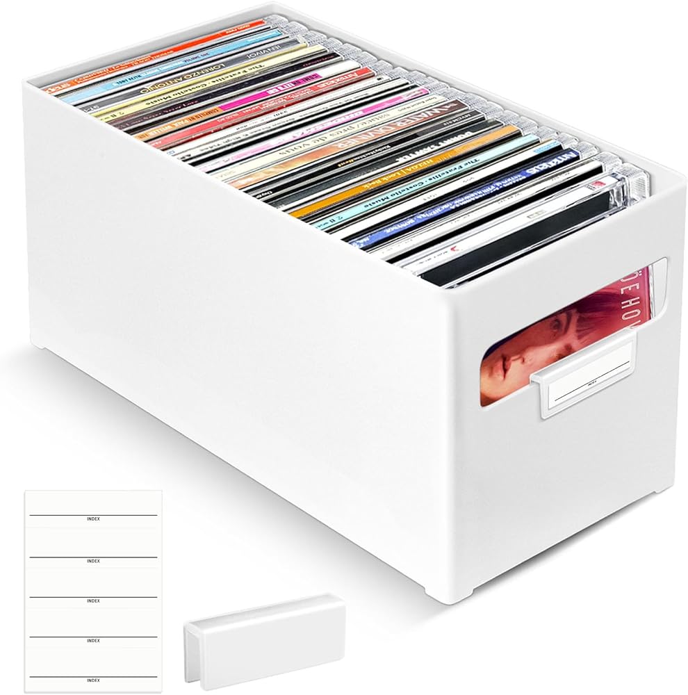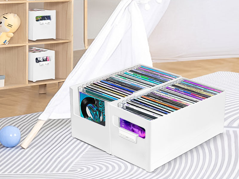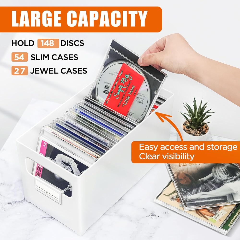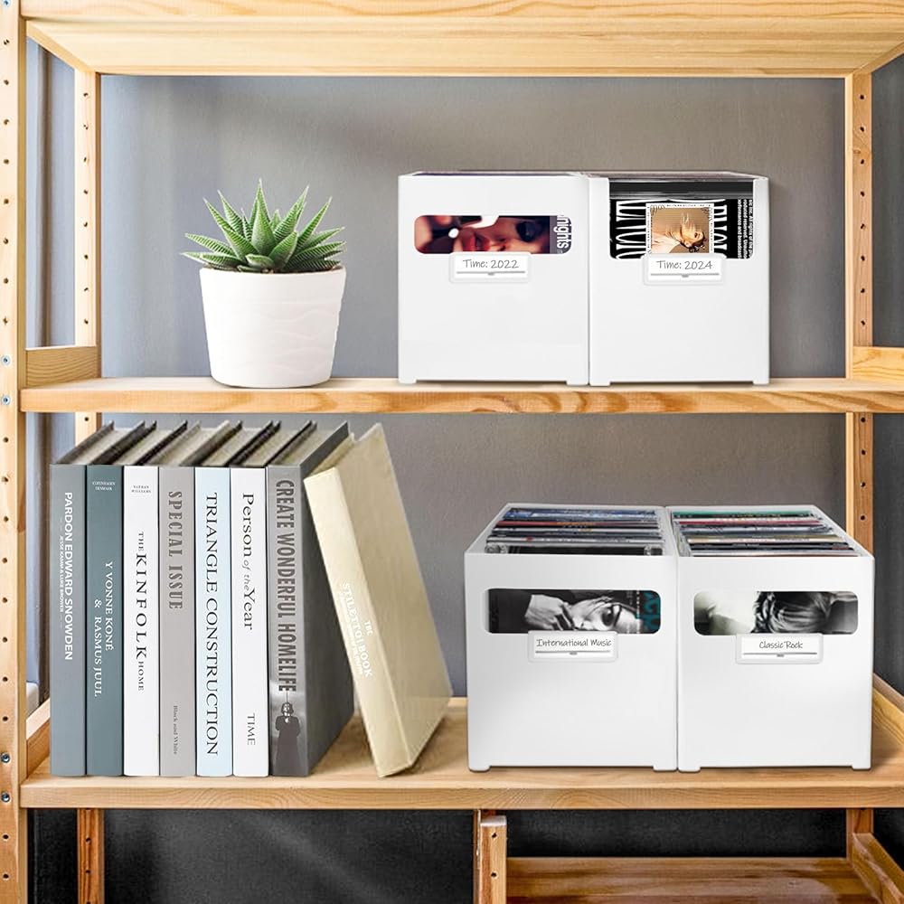 منظم الأقراص المضغوطة القابل للتكديس: تصميم قابل للتكديس، يمكن تكديس صناديق متعددة فوق بعضها البعض دون سحق الأقراص المضغوطة. الاستخدام الفعال للمساحة الرأسية، تحرير الرف الثمين أو مساحة المكتب. رائعة لنمو المجموعات.