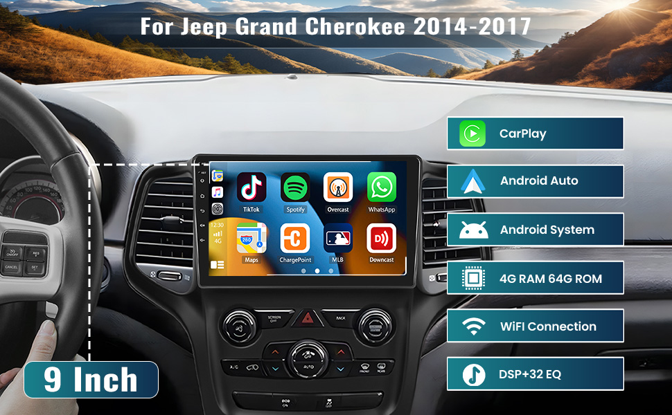 【شاشة لمس عالية الدقة 9 بوصة، ثلاث شاشات مقسمة، 59 واجهة مستخدم】ستيريو السيارة جيب جراند شيروكي 2015 مزود بشاشة لمس عالية الدقة 9 بوصات بدقة 1280*720، يمكنك تجربة لمسة أكثر حساسية. جهاز استقبال راديو carplay من الزجاج المقسى مقاس 9 بوصات 2.5D مع ثلاث وظائف تقسيم الشاشة، يمكنك عرض ثلاثة تطبيقات في صفحة واحدة. تدعم وحدة Android التلقائية لسيارة جيب جراند شيروكي 2014-2017 59 سمة لسطح المكتب و19 خلفية، مما يسمح لك بتبديل نمط واجهة المستخدم المفضل لديك