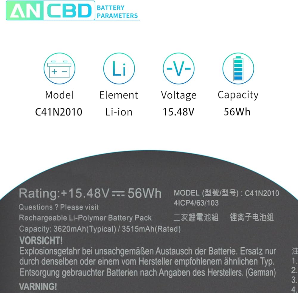 C41N2010 بطارية الكمبيوتر المحمول ل ASUS ROG Strix G15 G513IC G513IH G513QC G513QE ROG Strix G17 G713QE Series G513IC-HN002T G513IH-GTX1650TG513QE-HF017T G713QE-HX008T 0B200-03890000 15.48 فولت/56 وات في الساعة