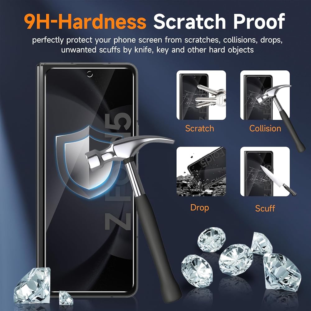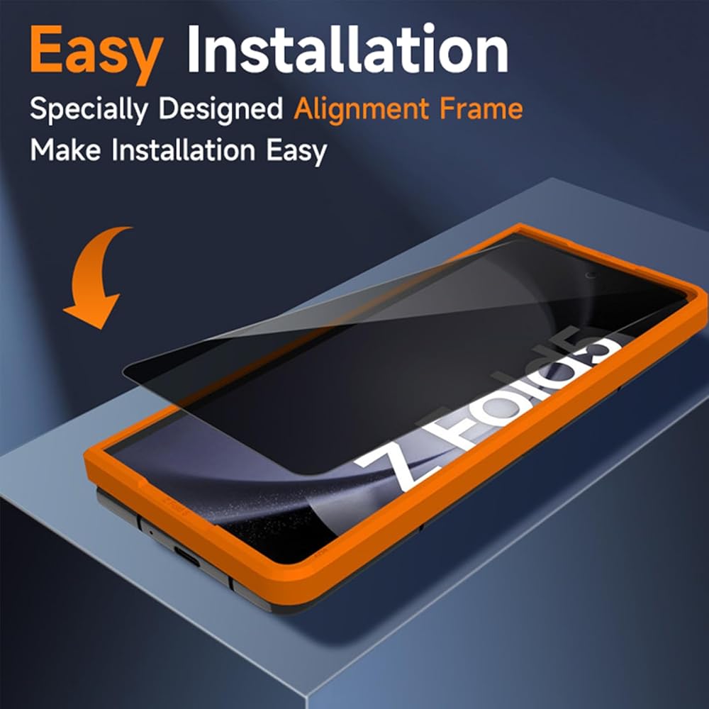 سهولة التثبيت ★ إطار المحاذاة المصمم خصيصًا يجعل من السهل تثبيت واقي الشاشة Samsung Galaxy Z Fold 5 ولا يترك أي بقايا عند إزالته. مغطى بطبقة مقاومة للماء والزيوت لتقليل بصمات الأصابع والحماية من الزيت والماء والغبار. من السهل الحفاظ على نظافتها.