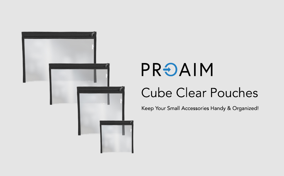 أكياس شفافة مكعبة من PROAIM لملحقات الكاميرا الصغيرة (عبوة من 4 قطع). كيس أشياء مزود بسحاب علوي للمصورين الفوتوغرافيين/مصوري الفيديو أثناء السفر (P-CUCL-01)