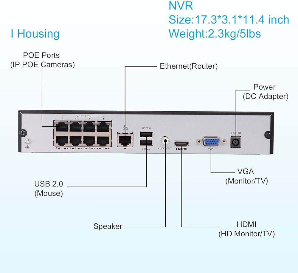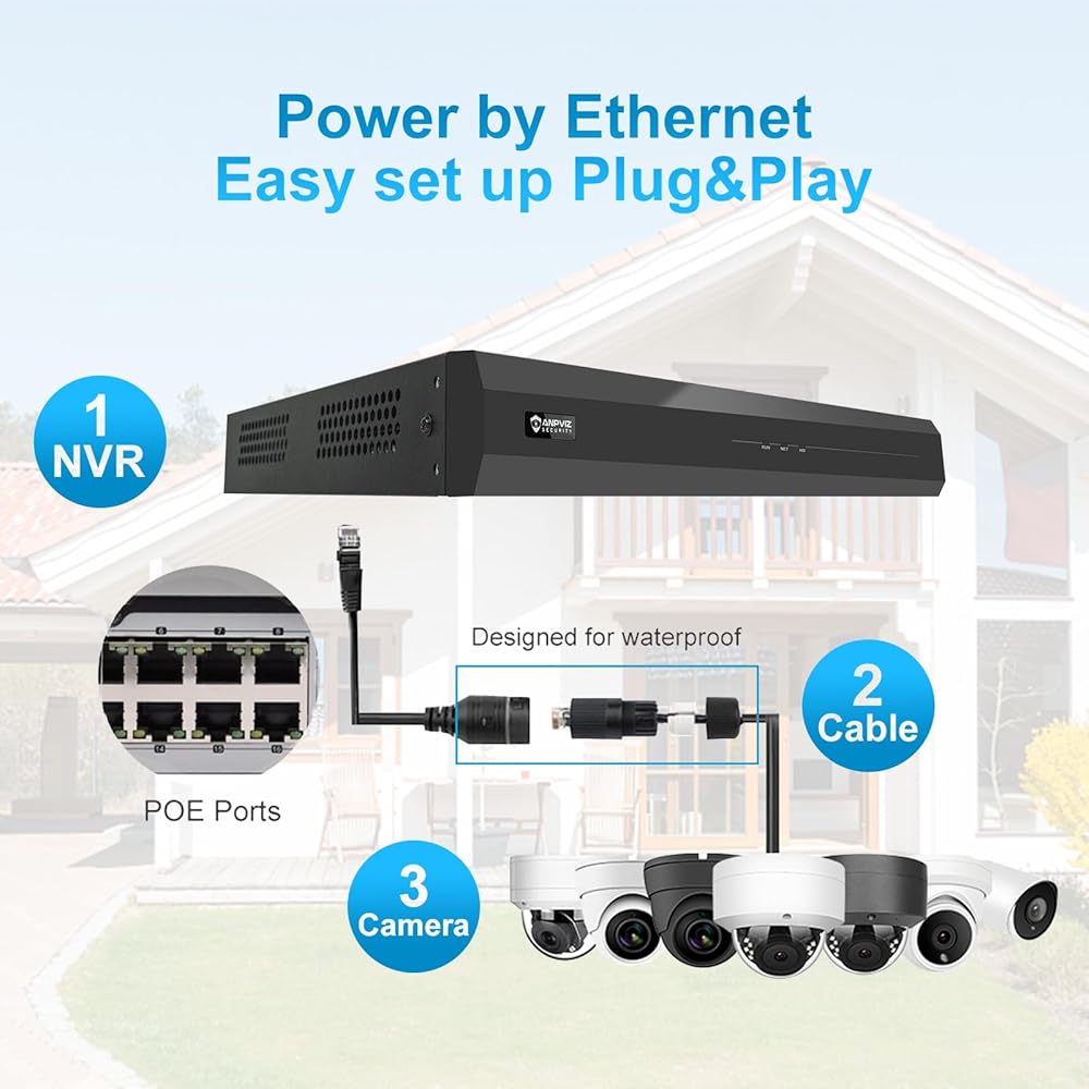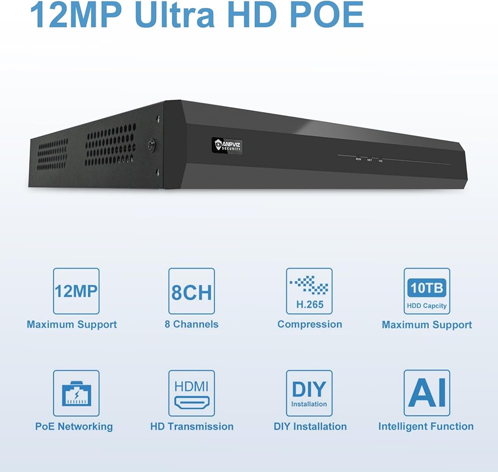 POE NVR 8 قناة: يحتوي Anpviz NVR على 8 واجهات POE، والتي يمكنها إدارة 8 كاميرات في وقت واحد. يمكن لكابل إيثرنت واحد نقل الكهرباء والبيانات لكاميرا POE. يحتوي NVR على محرك أقراص ثابتة سعة 2 تيرابايت مدمج، ويمكن للأعلى على الأعلى أن يدعم محرك أقراص ثابتة سعة 10 تيرابايت.