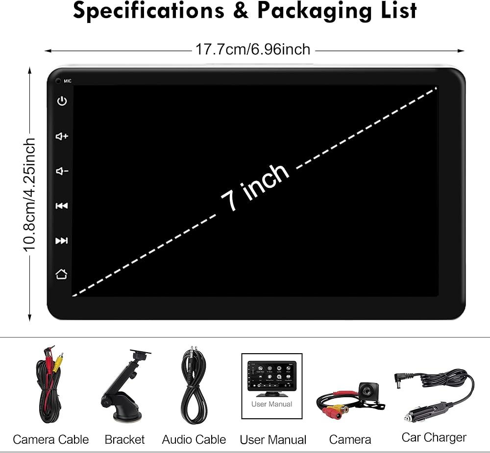 ✔[HD IPS شاشة تعمل باللمس ستيريو سيارة وتصميم شعار كبير] سيارة ستيريو لاسلكية بسيطة وأنيقة 7 بوصة HD في السيارة ستيريو تعمل باللمس صوت الوسائط المتعددة للسيارة مع شاشة 1024x600 HD IPS، تدعم تشغيل الفيديو 1080P. استمتع بالميزات مثل الخرائط والأفلام والمزيد! يدعم وظيفة النسخ المتطابق لنظام Android/IOS، ونظام الملاحة في السيارة carplay max أكبر بكثير من هاتفك ومعظم أجهزة الملاحة المحمولة. وستحصل على الرفاهية الإضافية لعناصر التحكم في الراديو التي تعمل باللمس للصوت الاستريو في سيارتك.