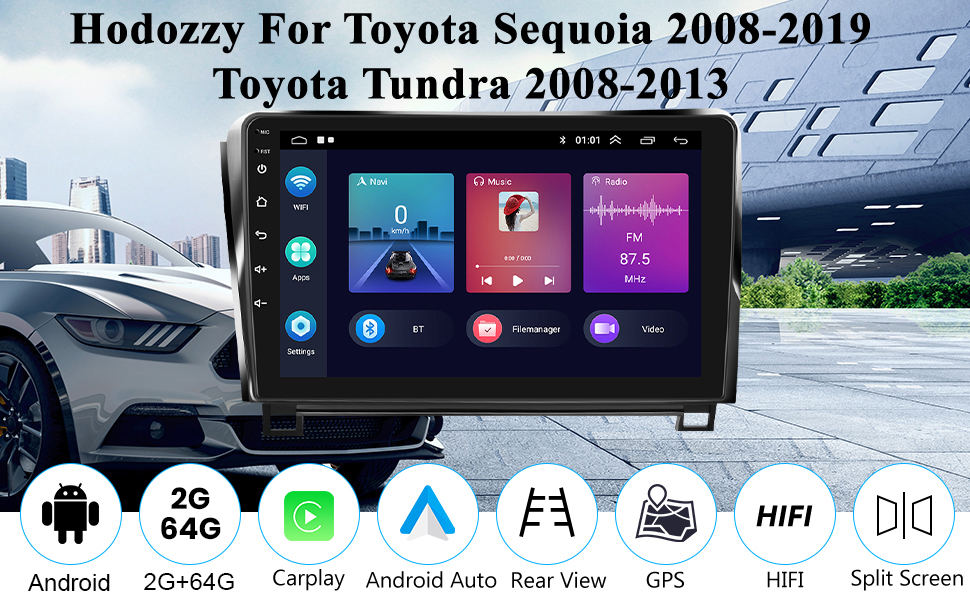 [2G+64G] Stereo Car toyota Tundra 2007-2013/Toyota Sequoia 2008-2019 Android Head ، Carplay Android Auto ، 10.1 بوصة تعمل بشاشة تعمل باللمس GPS ، Bluetooth ، WiFi ، FM RDS Radio ، BT/SWC/EQ