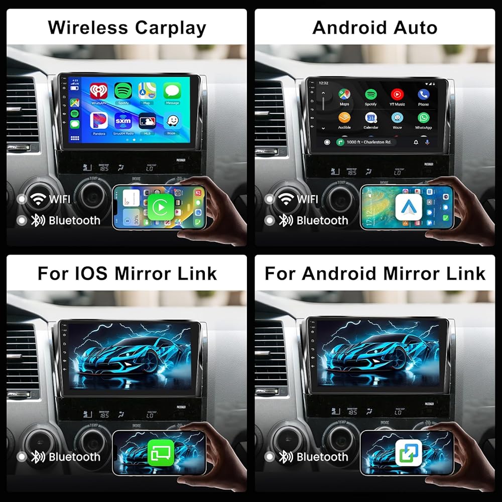 🚗【Carplay سلكي لاسلكي/Android Auto】مشغل سيارة Toyota Tundra Sequoia مدمج في Carplay وAndroid Auto، يدعم المساعد الصوتي الذكي، والحصول على الاتجاهات، وإجراء المكالمات، وإرسال واستقبال الرسائل، والاستمتاع بالموسيقى وما إلى ذلك. طريقة أكثر ذكاءً وأمانًا وأكثر متعة لاستخدام هاتفك في السيارة.