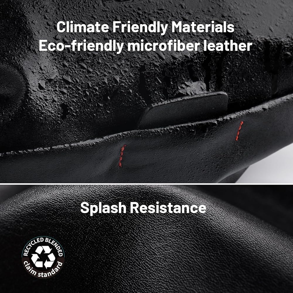 مواد صديقة للبيئة: تتميز بمتانة فائقة، وقوة للتمزق، ومقاومة للرذاذ والمرونة مقارنة بالجلد التقليدي، وجلد الألياف الدقيقة الصديق للبيئة، وقابل لإعادة التدوير وصديق للبيئة.