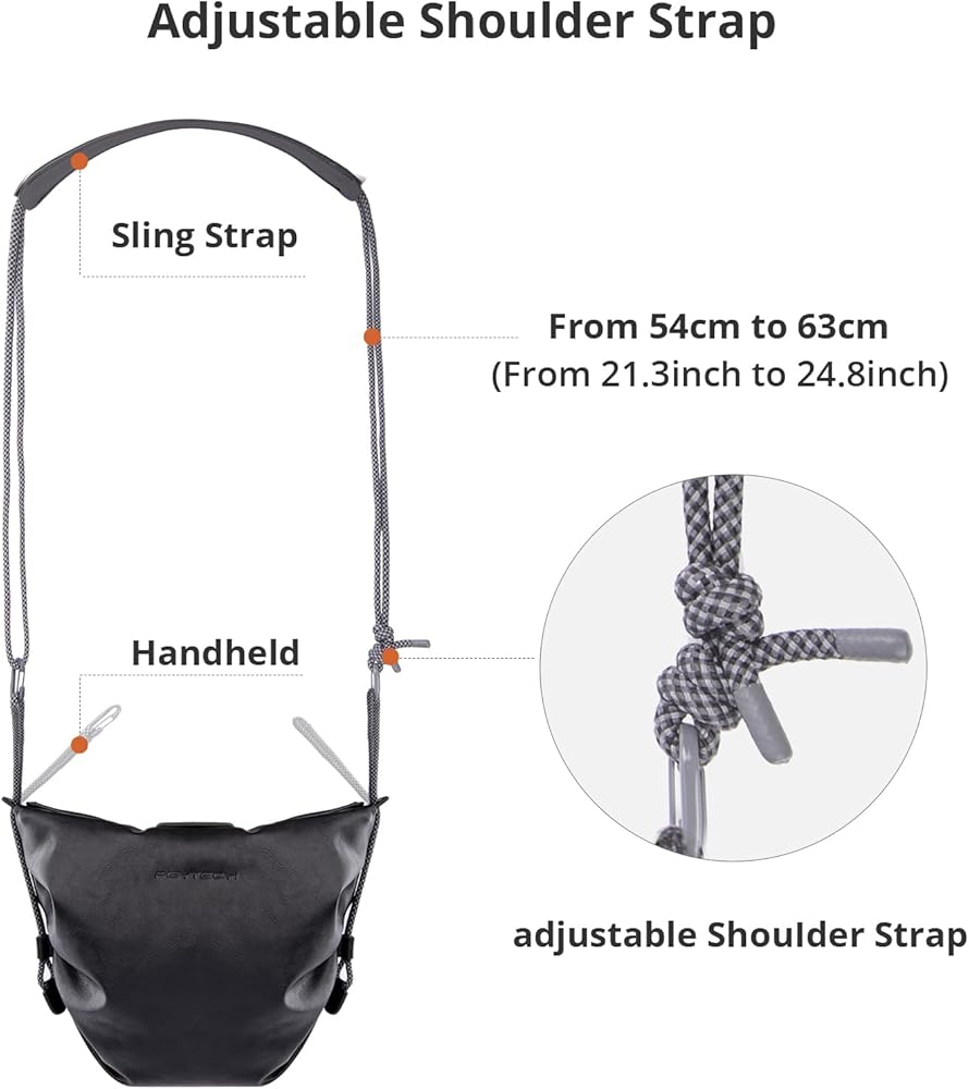 حقيبة كاميرا صغيرة: يمكن لحقيبة يد الكاميرا هذه حمل الكاميرا والعدسات الخاصة بك بسهولة وتأتي مع حزام كتف قابل للتعديل يمكن استخدامه كحقيبة يد/حقيبة كتف/حقيبة حزمة/حزام كاميرا. إغلاق برباط بإبزيم أمان لتجنب ارتخاء جهازك وحمله بسهولة