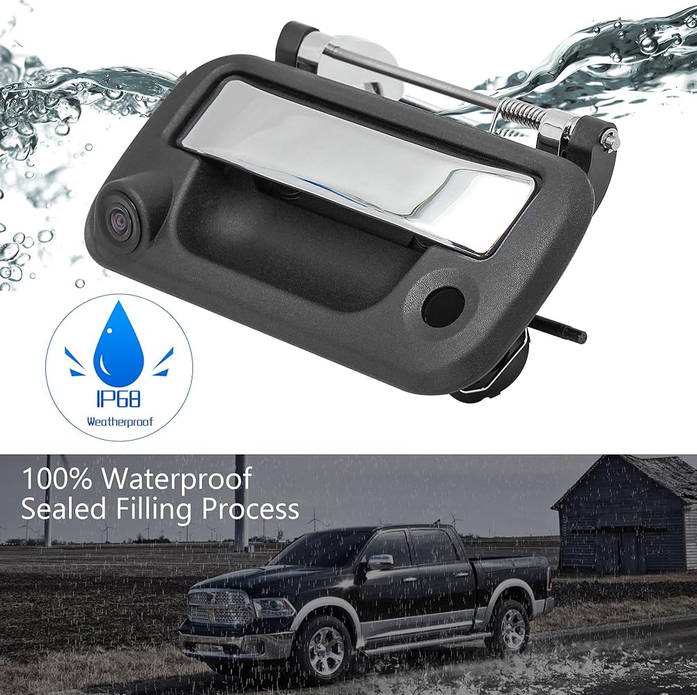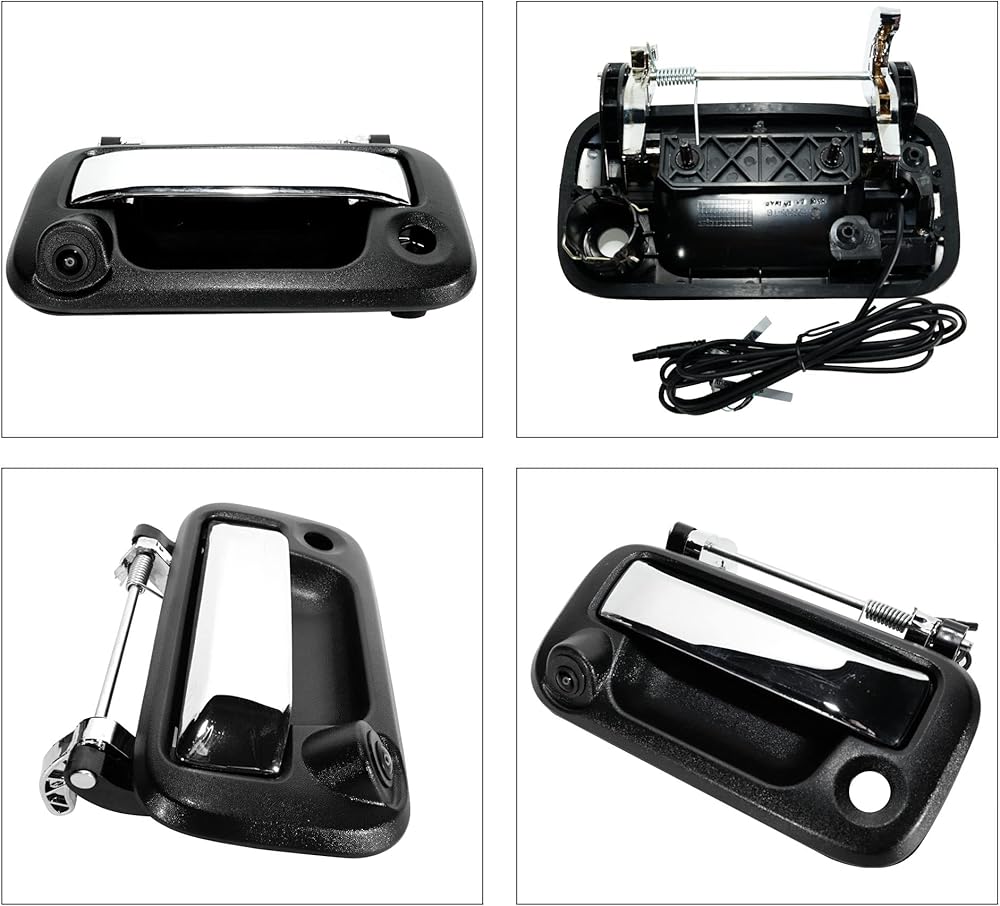كاميرا احتياطية لمقبض الباب الخلفي من Anina لـ 2004-2014 Ford F150، 2008-2016 F250 F350 F450 F550، 2006-2008 Lincoln Mark LT كاميرا وقوف السيارات الخلفية للباب الخلفي (أسود/كروم)