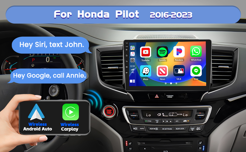 ستيريو السيارة مع IOS Carplay وAndroid Auto: لنظام المعلومات الترفيهي Honda Pilot مع شاشة تعمل باللمس وCarPlay لاسلكي/سلكي مدمج وAndroid Auto لاسلكي/سلكي للتحكم الفائق بمساعدة الصوت وسهولة الوصول إلى ميزات هاتفك، بما في ذلك الموسيقى والملاحة والمكالمات، الإشعارات والرسائل وغير ذلك الكثير (بعض هواتف Samsung مقيدة)