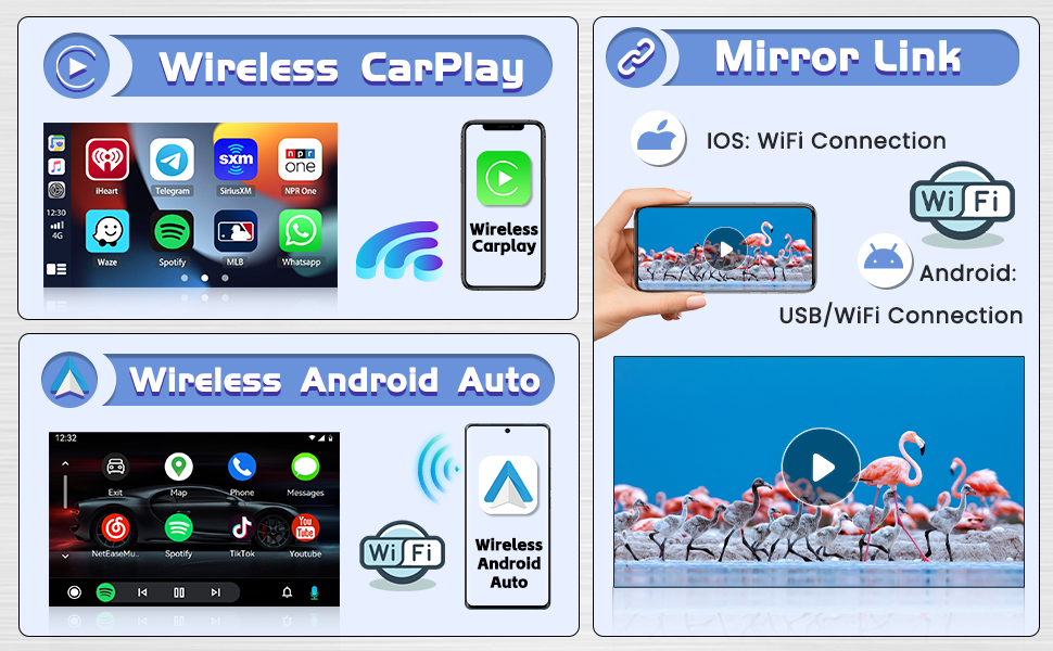 رابط مرآة Android/IOS: يمكنك توصيل ستيريو السيارة بشاشة اللمس من خلال نقطة اتصال WiFi أو كابل USB الأصلي لهاتفك لمزامنة شاشة الهاتف وشاشة راديو وحدة رأس ستيريو Honda Pilot. يعد هذا أمرًا مريحًا للغاية عند استخدام وظيفة التنقل في هاتفك. يدعم Android التحكم ثنائي الاتجاه، ويدعم iPhone التحكم أحادي الاتجاه (بعض هواتف Samsung مقيدة)