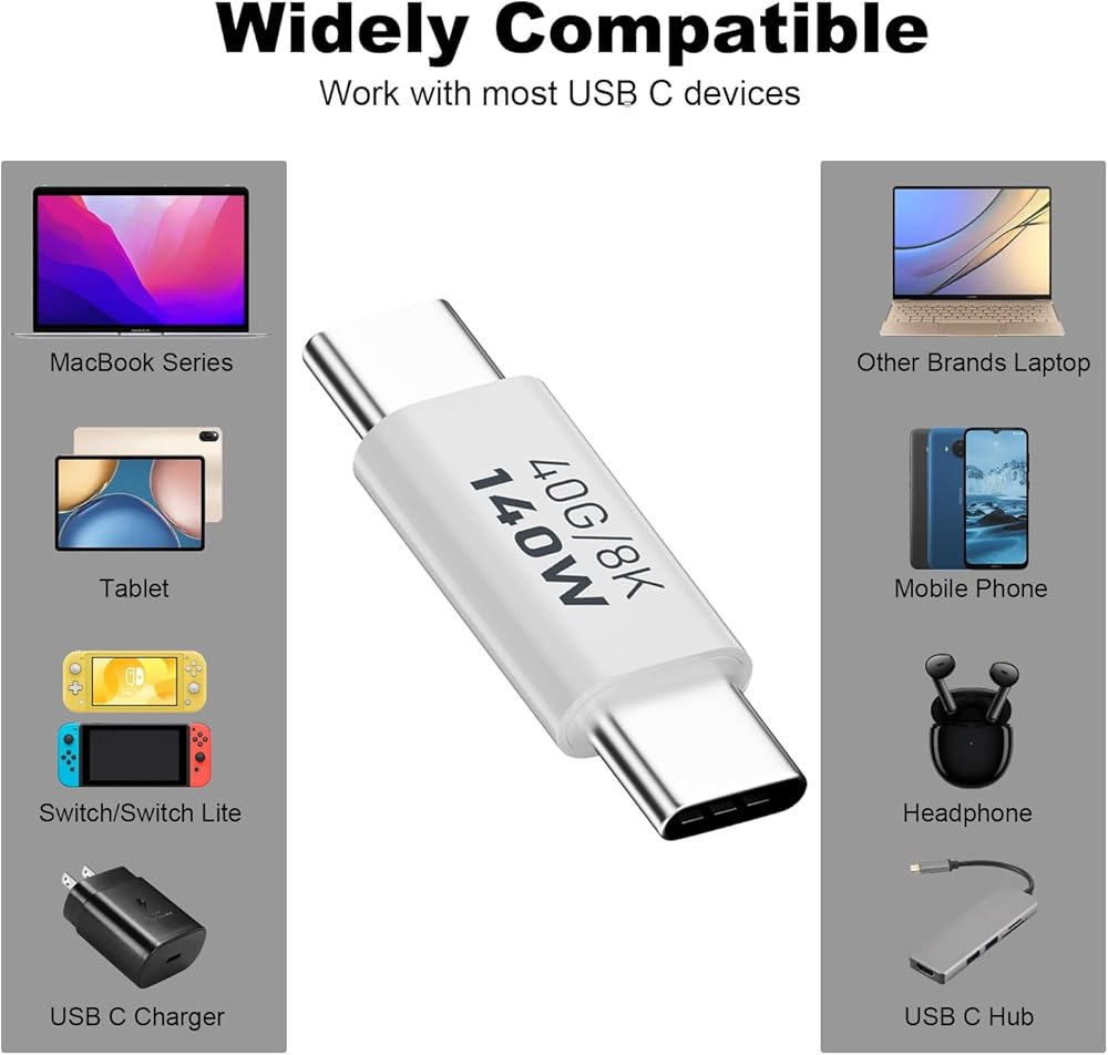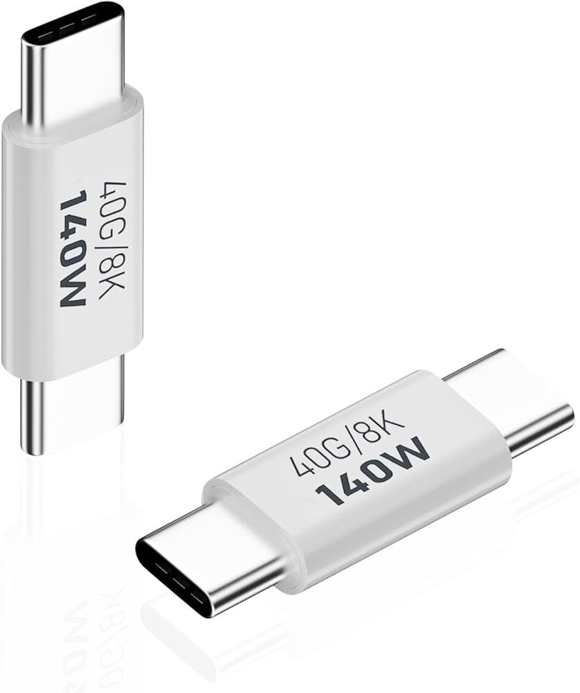 محول AreMe 2 Pack USB C ذكر إلى ذكر، موسع وصلة USB من النوع C يدعم 140 وات، 40 جيجابت في الثانية، 8K@60 هرتز لـ Thunderbolt 4/3، MacBook Pro/Air، الكمبيوتر المحمول، الهواتف والمزيد من الأجهزة من النوع C (أبيض)