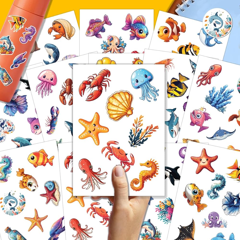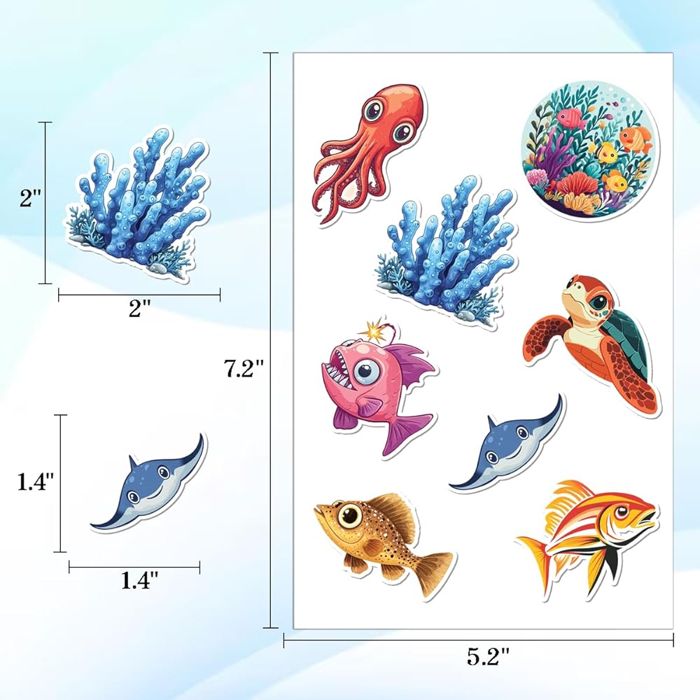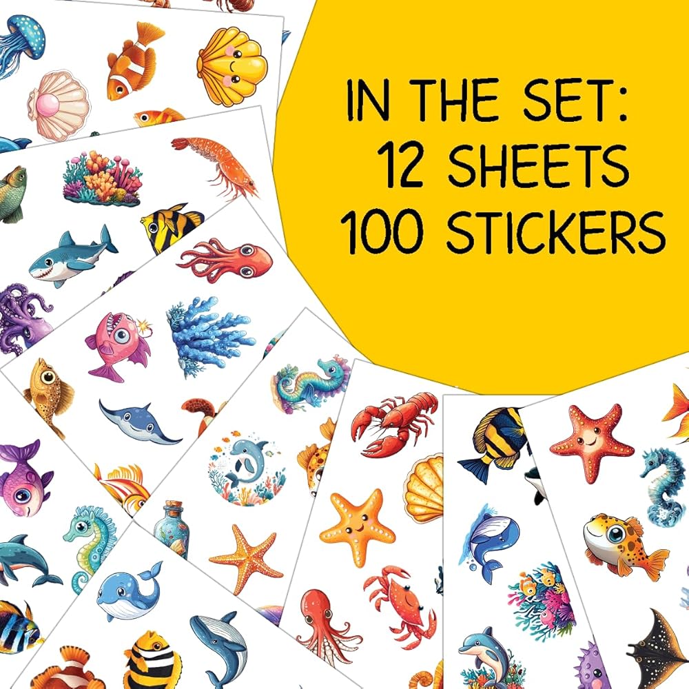 PACKAGE INCLUDES: The package includes 12 sheets, each with 100 PCS and measures 7,2 x 5.1 inches, as well as a full set of ocean animal stickers. This amazing ornament assortment is sure to exceed your expectations.