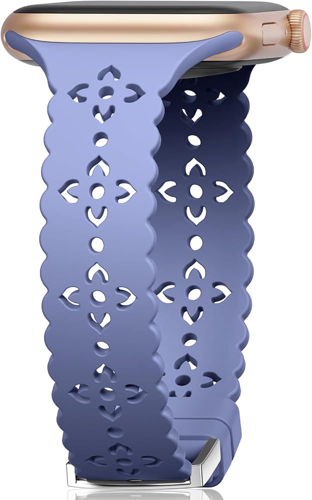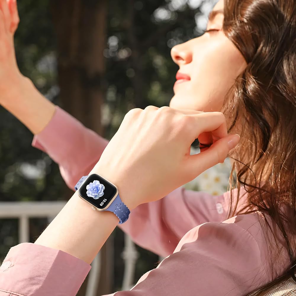 【تصميم أنيق من الدانتيل الزهري】عزز أناقة ساعة Apple الخاصة بك مع سوار السيليكون النحيف الفاخر الخاص بنا. تتميز بنمط زهرة مجوفة دقيقة وتصميم أنيق بحافة من الدانتيل، تمنح أحزمة ساعة التفاح هذه للنساء لمسة أنيقة وأنثوية. مثالي لإضافة شعور خفيف الوزن ومرن ومتطور إلى مظهرك اليومي.