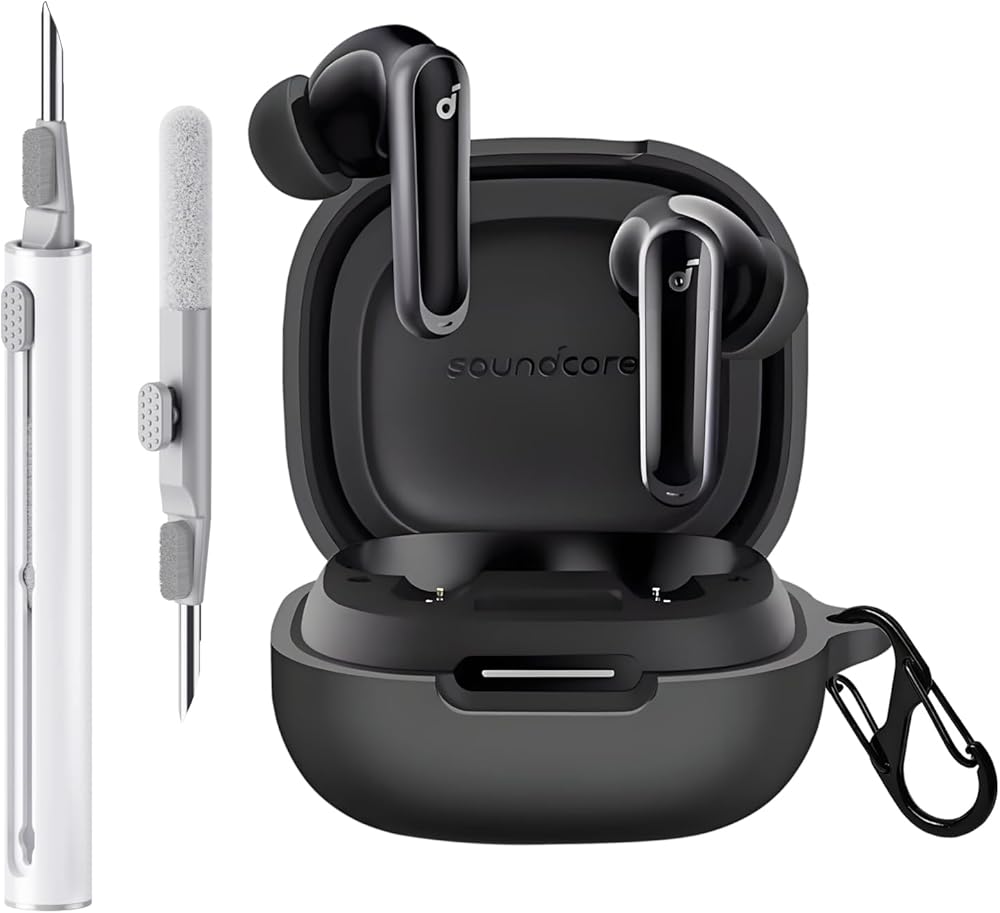 غطاء حافظة متوافق مع سماعات Soundcore P40i من Anker Earbuds، غطاء من السيليكون مع مجموعة أدوات تنظيف وغطاء واقٍ مقاوم للصدمات مع سلسلة مفاتيح إكسسوارات Carabiner (أسود)