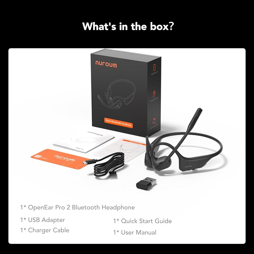 سماعات NUROMUM OpenEar Pro 2 مع ميكروفون، ميكروفون إلغاء الضوضاء ENC، اتصال بلوتوث 5.3 متعدد النقاط، سماعة رأس لاسلكية مقاومة للعرق للعمل، راحة 15 ساعة للمكتب المنزلي، القيادة